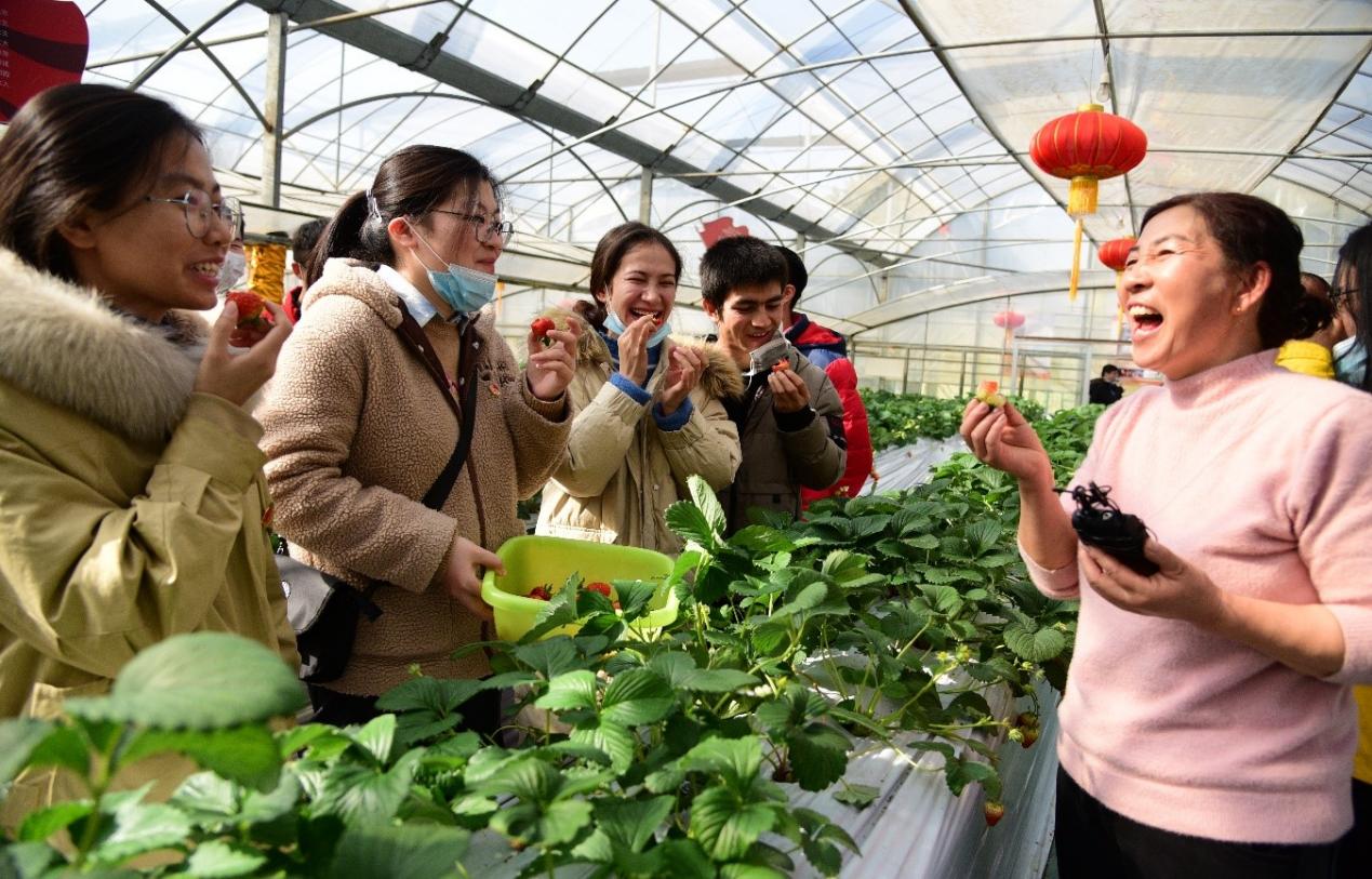 图为实践团成员品尝世业州草莓