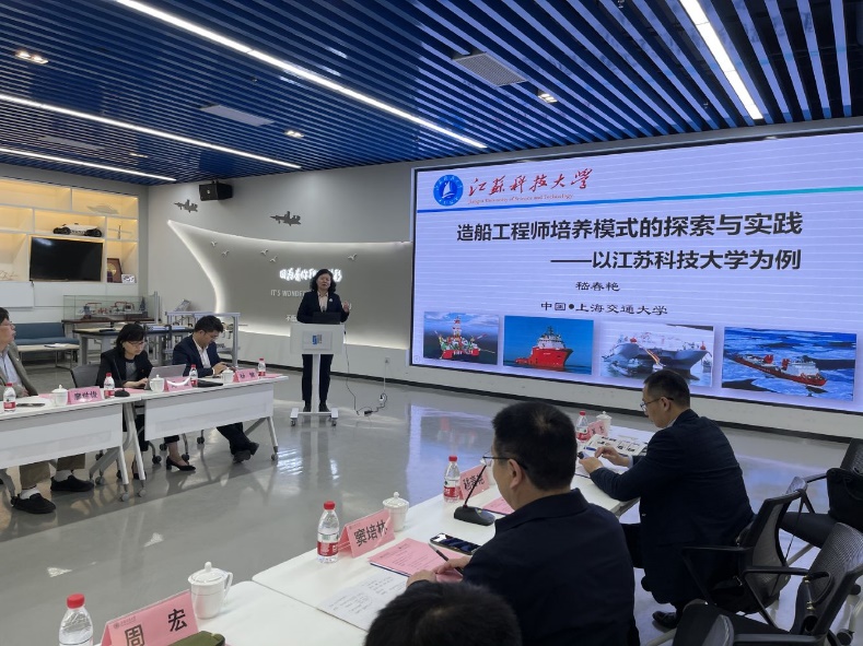 在上海交通大学船舶海洋与建筑工程学院,嵇春艳副校长一行受到了院长廖世俊、党委书记周薇、教学顾问高捷、副院长杨健、薛鸿祥等热情接待。在参观了船舶与海洋工程协同设计中心后,嵇春艳副校长做了《造船工程师培养模式的改革与实践—以雷竞技RAYBET最新版为例》的主题报告,廖世俊院长对RAYBET官网“五十载初心不变,做造船工程师的摇篮”表示赞赏。