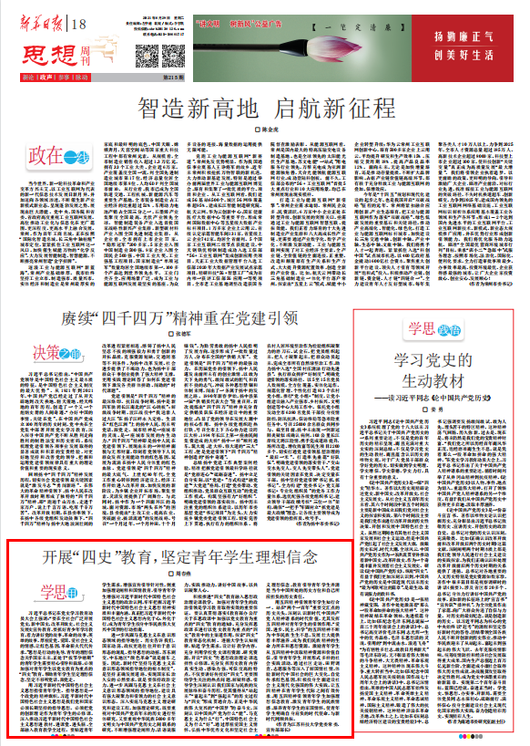 新华日报:开展“四史”教育,坚定青年学生理想信念