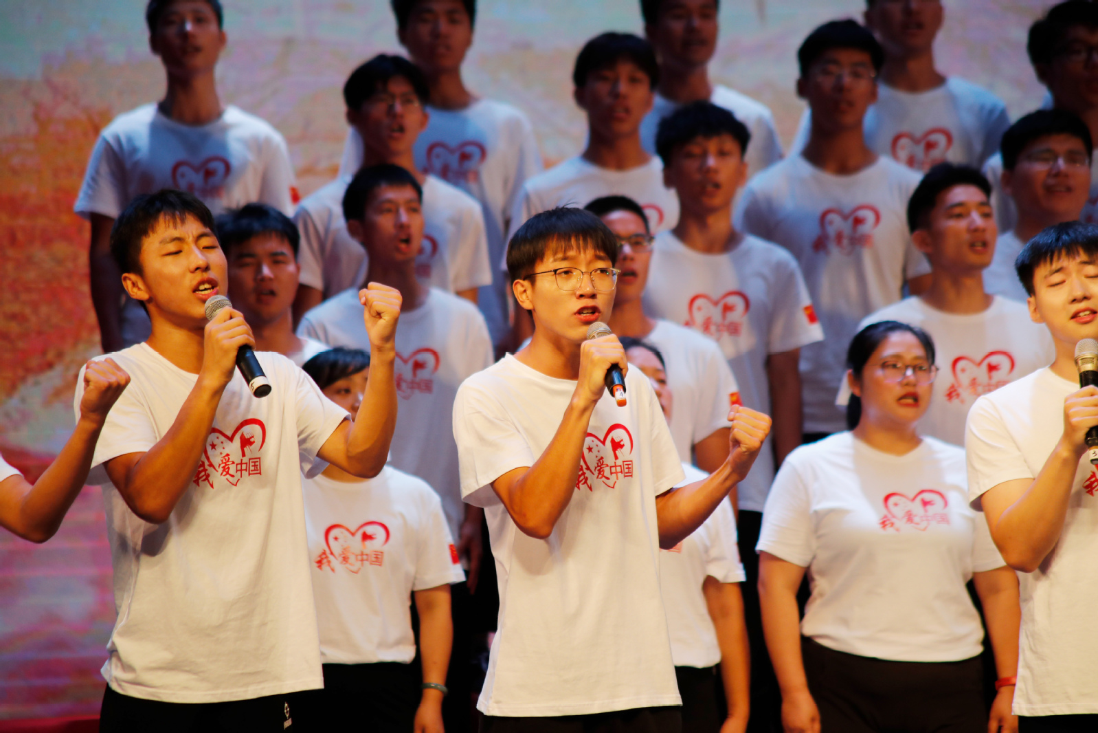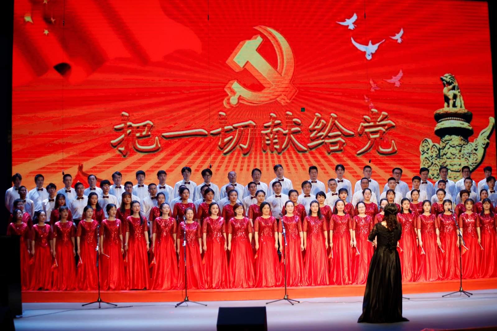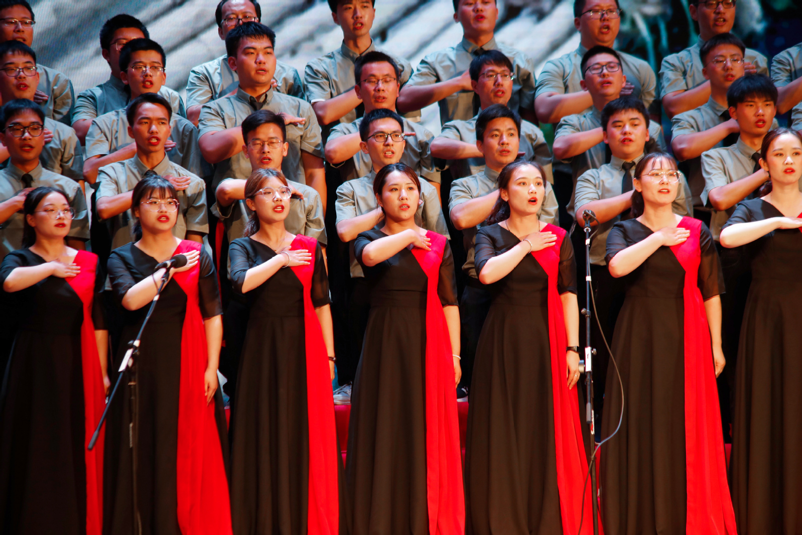 “在希望的田野上”“壮丽航程”“不忘初心”“我宣誓”……一首首好歌唱响校园余音绕梁。舞台上,情景演唱、多重合唱、歌舞串烧、击鼓踏歌、领唱领诵、钢琴伴奏,艺术形式交相映衬相得益彰,动人的旋律、经典的唱词、激越的情绪烘托出磅礴意境,引人深深感怀一百年岁月峥嵘,一百年奋斗不息,动情回望中国共产党带领中华儿女经过艰苦卓绝的斗争和奋斗,从容写下全国各族人民富裕、兴旺和幸福的壮丽篇章,礼赞开创百年波澜壮阔的伟大征程。