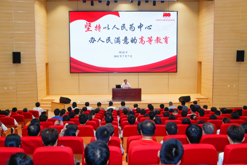 百年大党正风华。根据党史学习教育要求,7月7日下午,校长周南平在长山校区行政楼100号报告厅作了题为《坚持以人民为中心,办人民满意的高等教育》的党史学习教育专题党课。学校总会计师办公室、财务处、招投标工作办公室党支部党员,计算机学院、理学院师生党员全程聆听党课。
