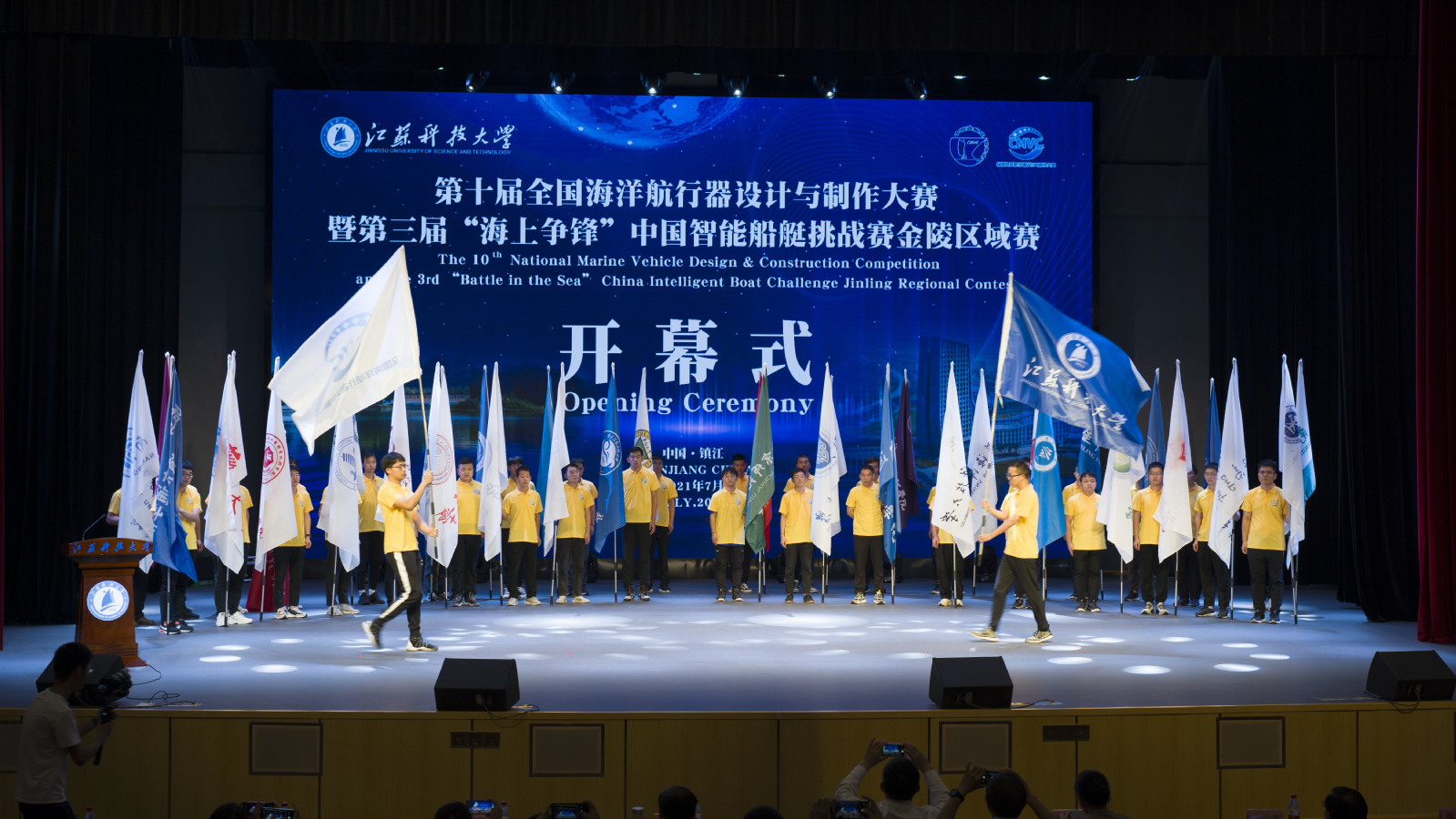 7月12日,第十届全国海洋航行器设计与制作大赛暨第三届“海上争锋”中国智能船艇挑战赛金陵区域赛闭幕并且进行颁奖,与会嘉宾为参赛选手颁奖。