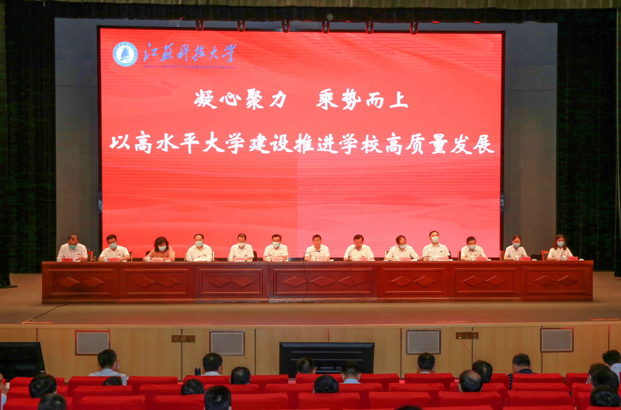 校长周南平作《凝心聚力 乘势而上 以高水平大学建设推进学校高质量发展》的工作报告,总结学校2021年上半年事业发展情况,解读高水平大学建设的背景、意义与方案落实,部署下半年重点工作,明确做好工作的几点要求。他强调,经过全校上下的共同努力,学校已经被正式列入江苏高水平大学建设高峰计划建设高校名单,这是关系到学校未来发展的一个极其重要的新起点。只有立足于高水平大学建设,通过高质量发展提高学校综合实力和发展能力,才能争取更多的政策、资源支持,进一步提升社会、行业形象和地位。