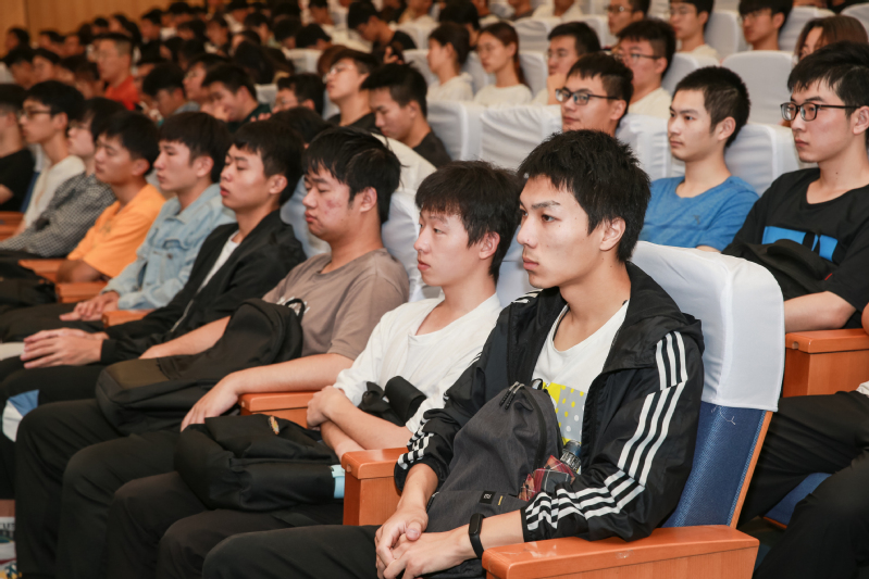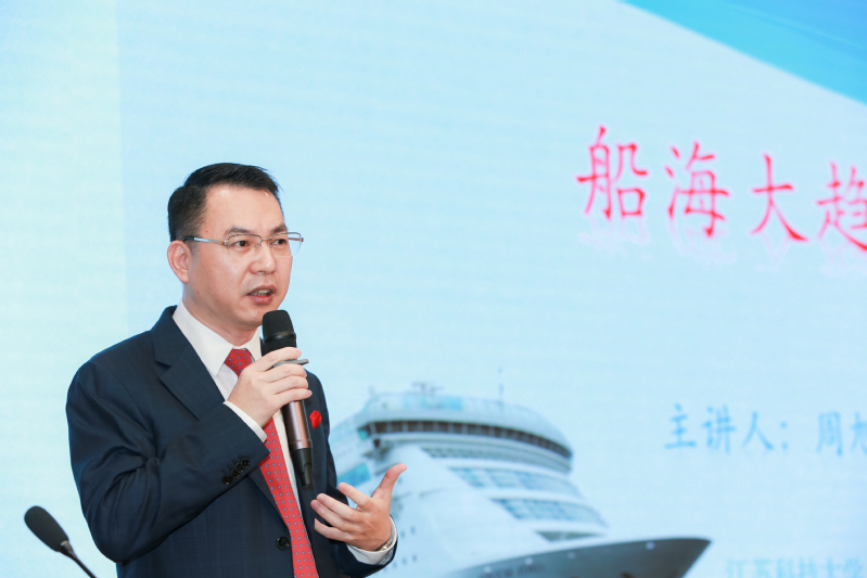 周旭辉以幽默风趣故事开场,用诙谐的口吻介绍了自己入职广船国际从设计部门、采购部门到担任副总经理的工作历程,用自己丰富的人生经历践行“吃得了苦、扎得下根、聚得齐心、干得成事”的江科大人特质,赢得了台下师生如潮水般的掌声。周旭辉循着历史脉络,声情并茂讲述了我国船舶工业快速发展的历程。讲座中,周旭辉表达了对国家强大造船业的强烈自豪感,引发全体师生共鸣。最后,周旭辉呼吁同学们关注国家船海形势,鼓励大家投身到船海发展建设中来,为国家的船舶工业、海洋事业献出自己的一份力量,言辞中饱含着对学弟学妹的热忱期望。