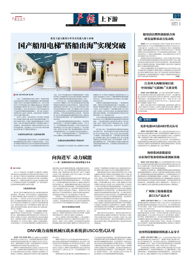 中国船舶报:江苏科大两船用项目获中国国际“互联网+”大赛金奖