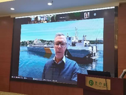 11月11日下午15时,研讨会正式开幕。雷竞技RAYBET最新版周利教授和瑞典皇家理工学院Magnus Burman教授分别致辞,并邀请大会专家做主题报告。中国远洋海运集团有限公司的蔡梅江教授展望了双碳目标下的2035北极航运新模式,阐述了我国参与北极事务的新思维。沈权船长即将随雪龙2号前往南极开展为期1年半的南极科考。临行之前,他为大会做了中国南北极科考事业的精彩解读。大连理工大学的宗智教授作了“Engineering Environmental Ice Conditions and Ship Resistance in Brash Ice”报告,重点介绍了碎冰模型实验开展情况和数值模拟方法。德国汉堡科技大学的Hauke Herrnring教授、瑞典皇家理工学院的MengZhang博士、Harsha博士分别做了主题报告。