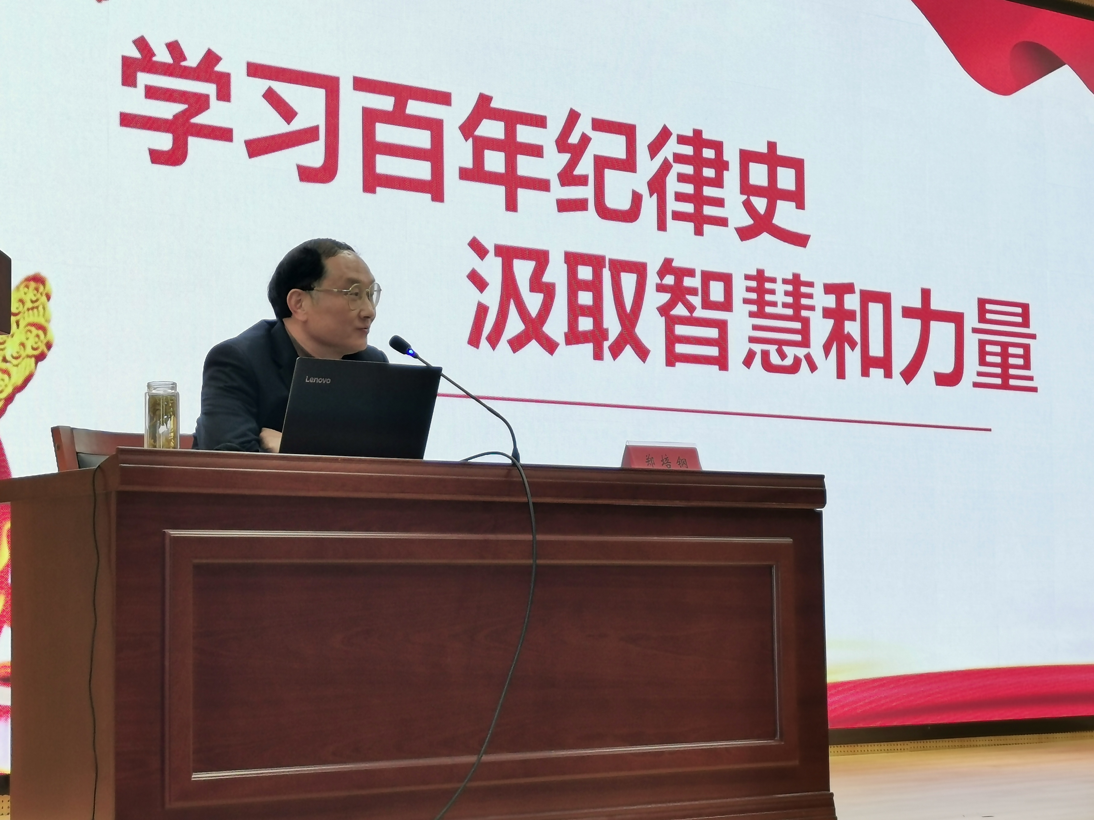 郑培钢的报告以“学习百年纪律史,汲取智慧和力量”为主题,以时间为主线,从民主革命时期、新中国成立后、改革与社会主义现代化时期、党的十八大以来这四个主要时期,讲述了党的纪律建设百年历史,并重点突出四个时期的重要会议、重要事件、重要人物及其影响。