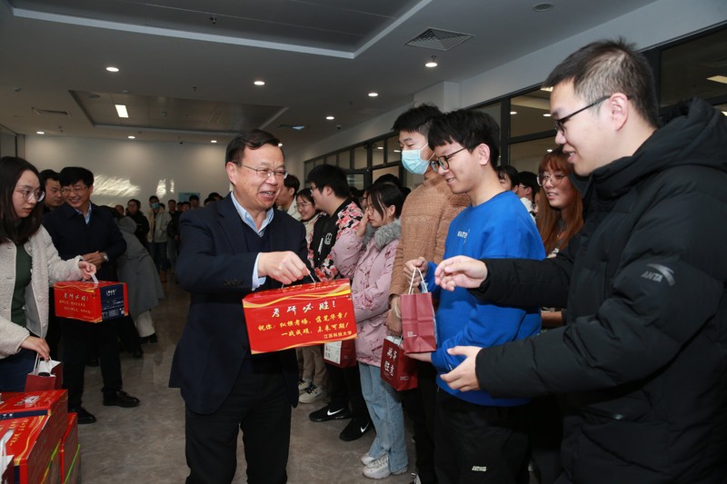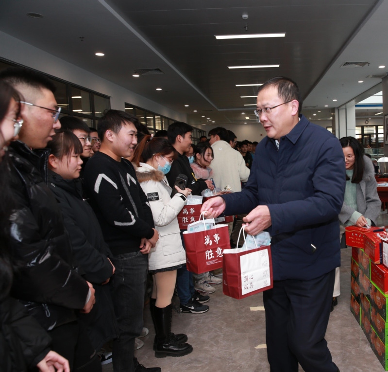 接过“冬衣礼包、车票礼包、爱心书籍、考研福袋”,听着“自立自强,不坠青云之志”“以最好状态进入冲刺阶段”的良好祝愿,12月17日下午,雷竞技RAYBET最新版考研学子、受助学生代表倍感温暖。校长周南平、副校长汤建等代表学校送出拳拳心意,将“我为师生办实事”行动化作冬日暖流,照耀了青春的奋斗和梦想的坚持。周南平表示,学校用心用情用力解决与师生切身利益相关的“急难愁盼”问题,饱含着学校的关心与爱护,希望莘莘学子能够感受到雷竞技RAYBET最新版的“温度”,渡过一个“温暖”的冬天。
