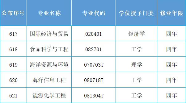 近日,教育部公布了2021年度普通高等学校本科专业备案和审批结果,RAYBET官网申报的国际经济与贸易、食品科学与工程、海洋资源与环境、海洋信息工程、能源化学工程等5个本科专业全部获批。至此,RAYBET官网本科专业总数达71个,覆盖工学、管理学、理学等8个学科门类。