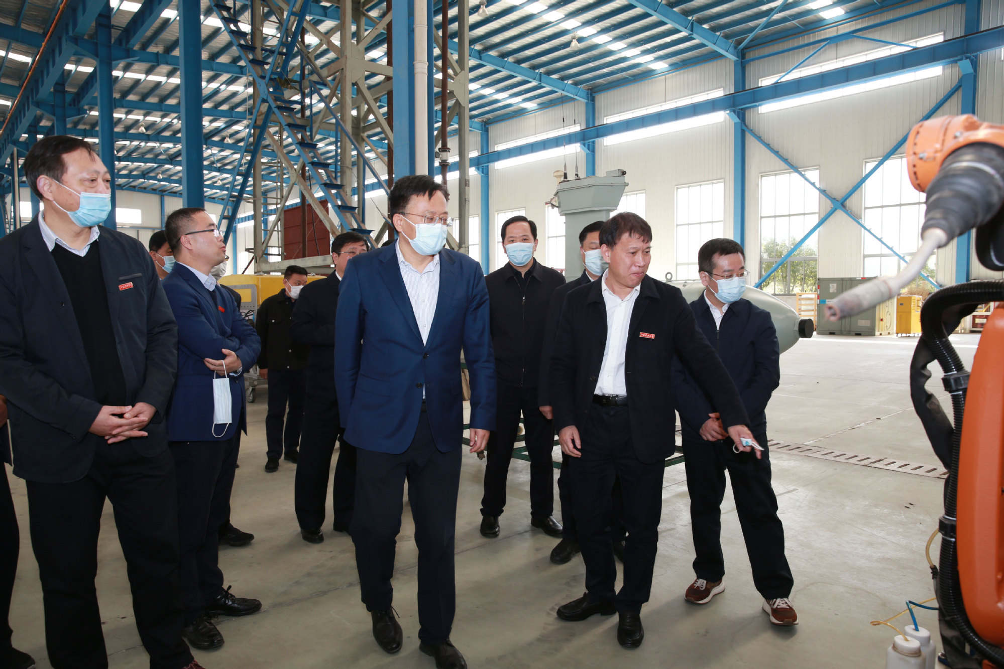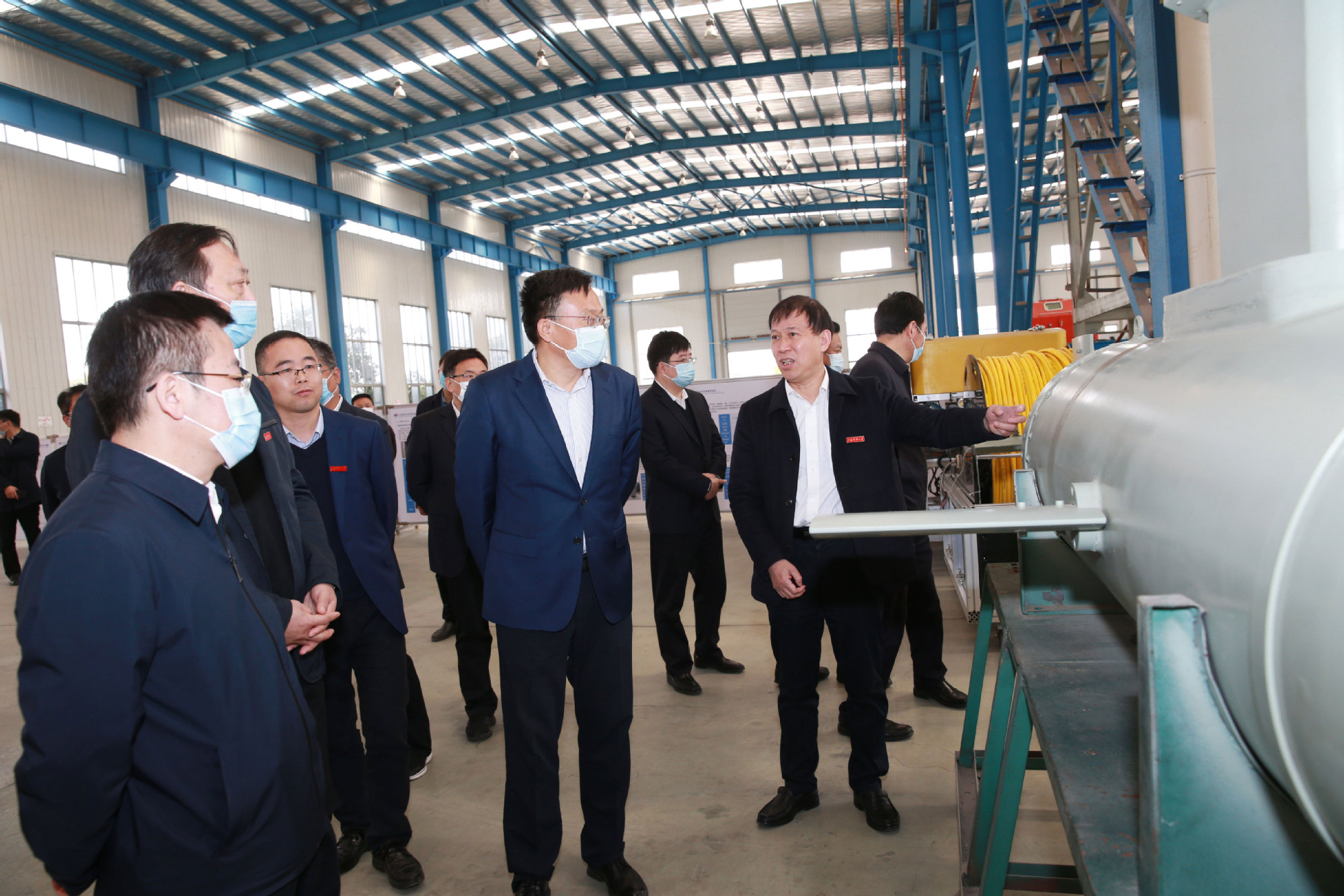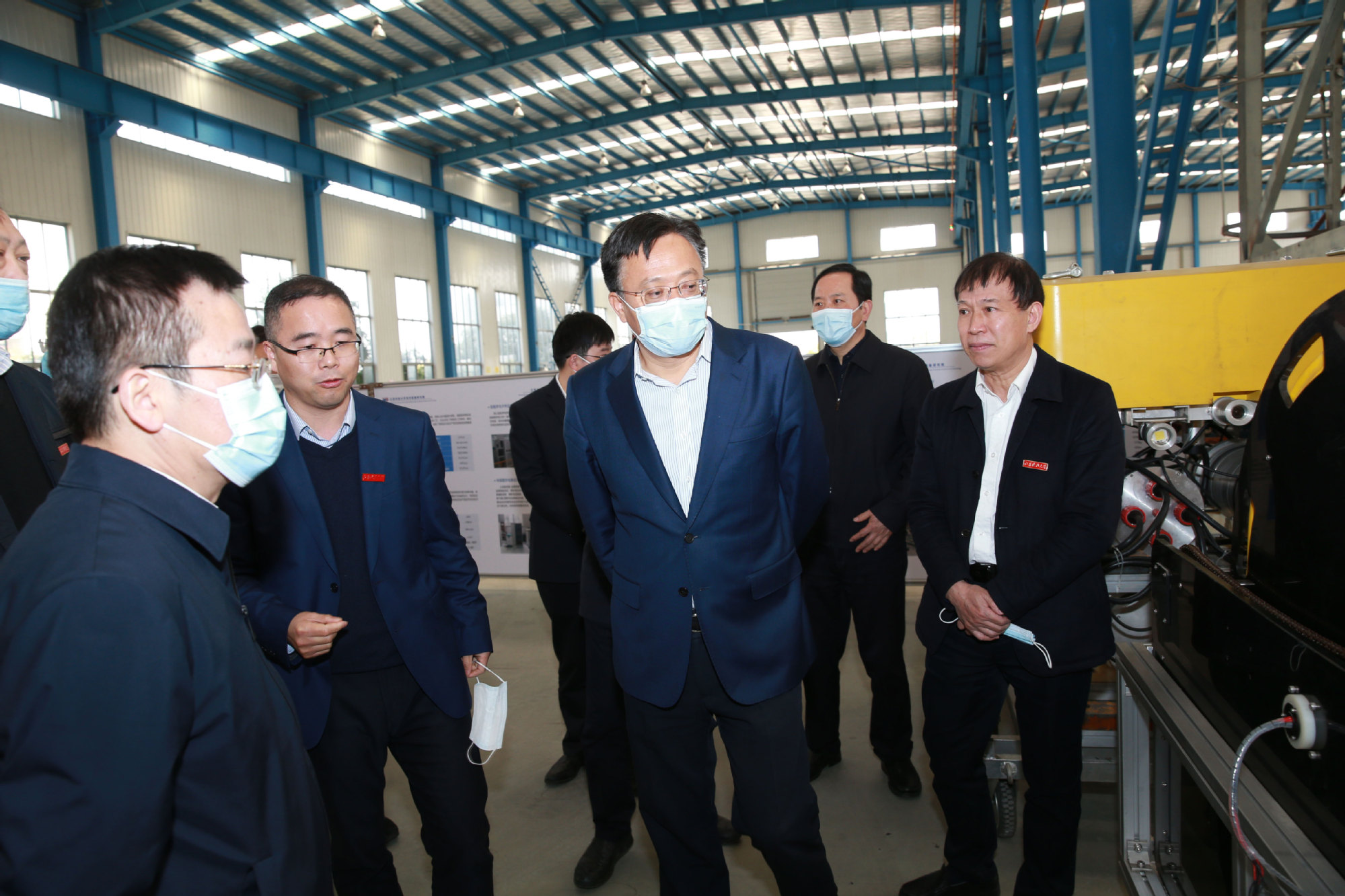 参观过程中,胡广杰对学校在薄板电磁感应加热矫平机等自主产品、关键技术方面取得的突破性和标志性成果赞赏有加。他向学校提出殷切期望,希望学校按照省政府与中国船舶集团共建协议,加快推进高水平大学建设,早日建成具有船舶特色的一流大学,向“双一流”高校行列加速迈进。