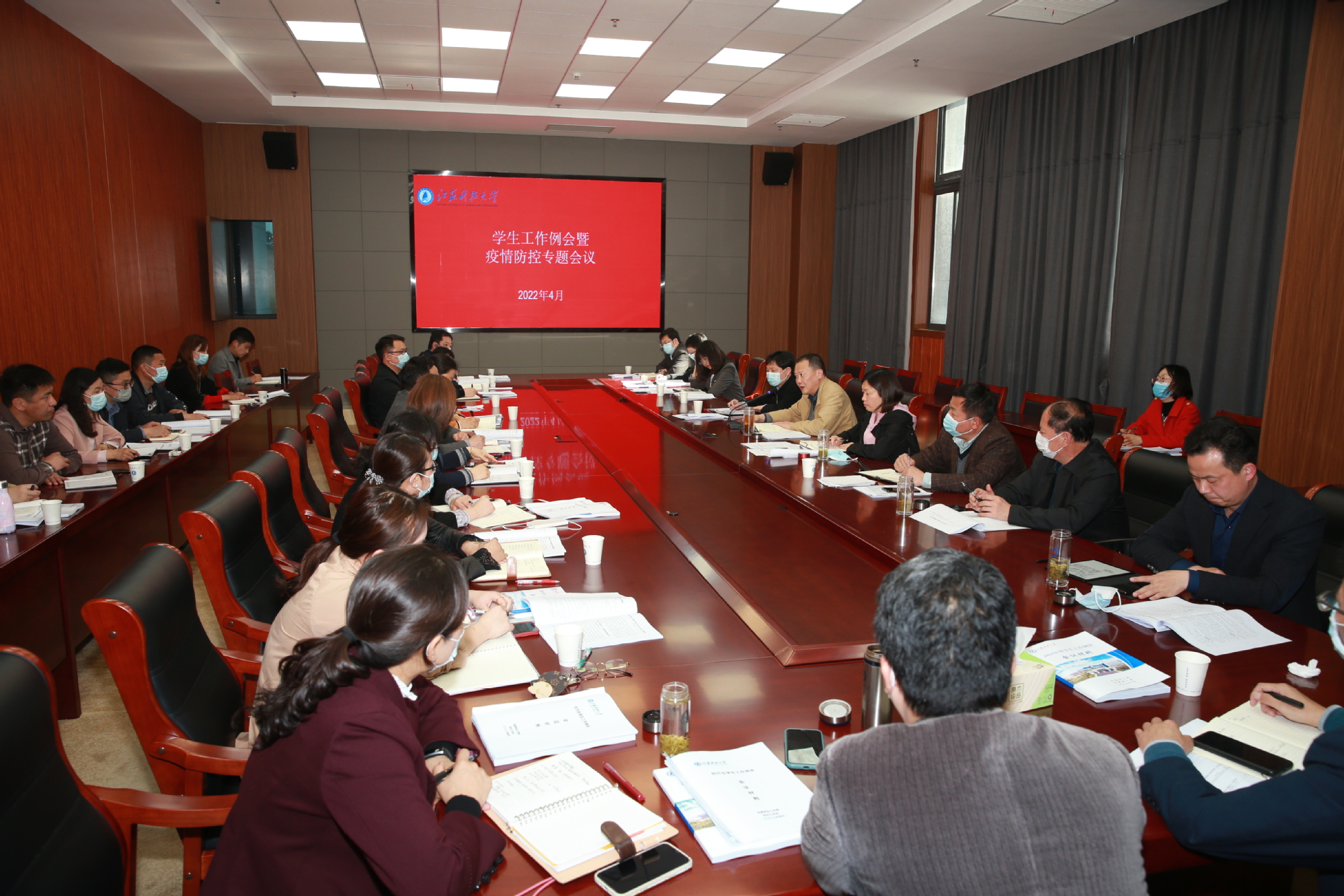 4月6日下午,学校在长山校区200号会议室,召开四月份学生工作例会暨学生疫情防控专题会。校党委常委、副校长汤建,党委宣传部、学生处、研工部、团委、教务处、研究生院、安全保卫处、后勤管理处等相关职能部门负责人参加了会议。