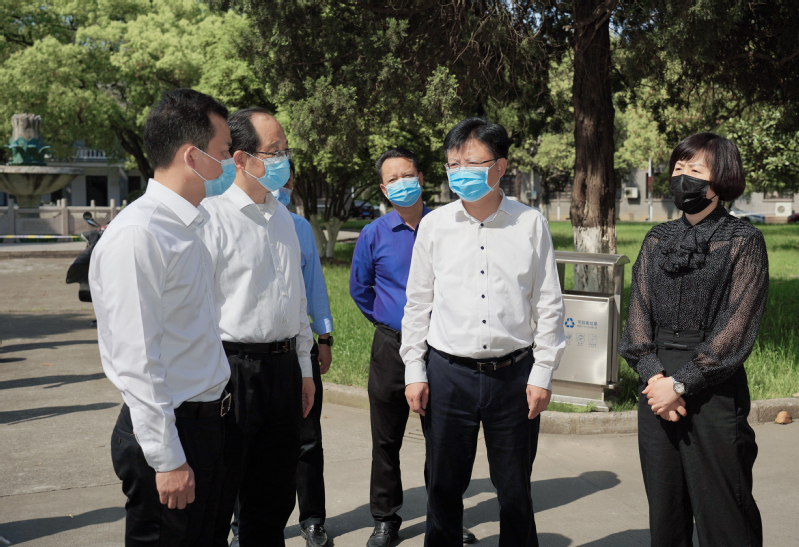 4月11日下午,京口区委书记徐申锋调研学校梦溪校区疫情防控工作,区委常委、宣传部部长孙国林,区政府副区长宋小燕,区政府副区长、公安京口分局局长赵鹏,京口区委办、区教育局、区卫健委、区市场监管局、正东路街道等单位主要负责同志出席调研。校长周南平,党委副书记许俊华,党委常委、宣传部长周春燕参加。