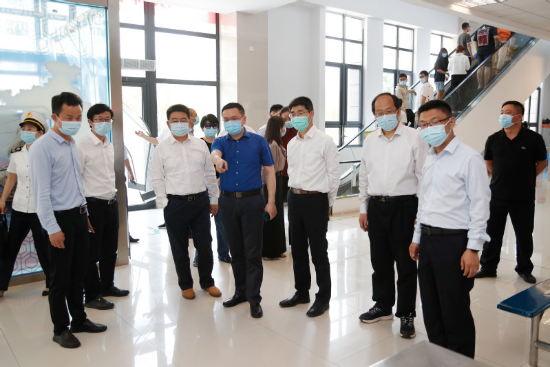 薛国荣一行首先来到梦溪校区,前往学校大门、核酸检测现场、学生公寓,检查了门禁系统、校门管控、全员核酸检测及学生公寓疫情防控情况。随后,在长山校区检查西苑食堂、快递中心、集中医学观察区,以及物资储备等情况。