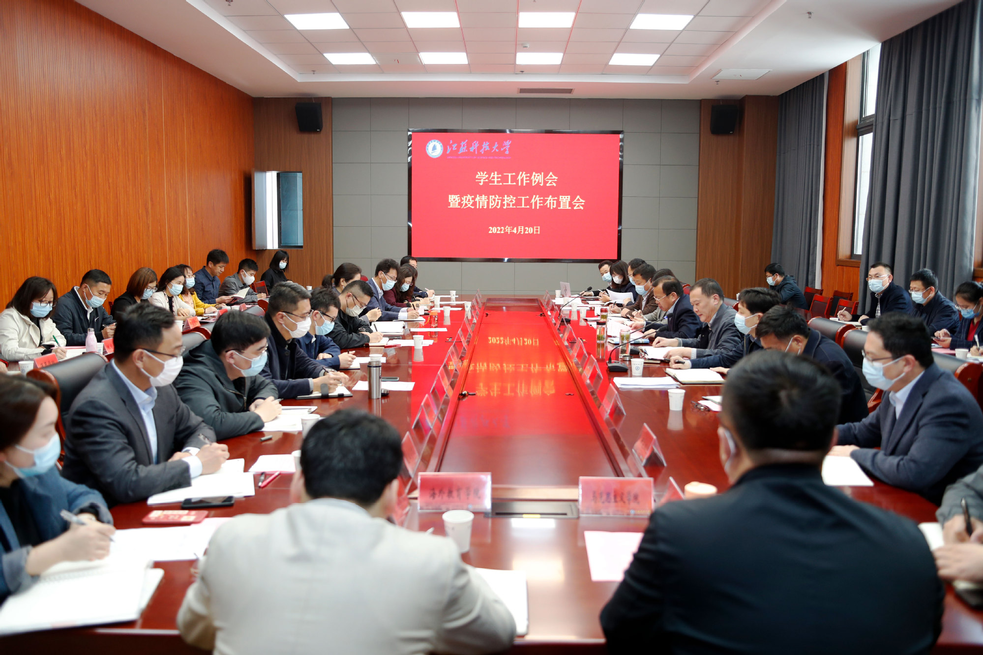 会上,学生处处长胡爱祥对疫情防控、辅导员队伍建设以及毕业生就业指导等重点工作4月份的开展情况进行了总结回顾,并就学校封闭管理期间精细化做好学生思想政治教育、助学帮困、心理健康教育、就业指导等工作进行了安排。研工部部长祁凯就研究生的学风建设、评奖评优、日常管理等工作进行安排。党委常委、党委宣传部部长周春燕就学校重点工作的宣传、疫情防控宣传教育、意识形态工作、校园文化氛围营造、舆情监控与处理等工作进行部署。安全保卫处处长蒋宏志就学生安全教育、学生参军入伍、校园安全管理等工作进行了通报。教务处处长田剑就本学期教学进度调整、本科生毕业资格审查进程安排、线上教学与毕业设计指导、学科竞赛组织等工作进行了安排。研究生院常务副院长王俊就研究生线上教学、研究生毕业资格审查进度安排、研究生招生等工作进行了通报和安排。校团委副书记徐剑就疫情防控志愿服务工作、校园文化艺术节、“挑战杯”创业计划竞赛组织等工作进行了通报。信息化办就新版健康打卡的使用与管理等工作进行了通报。后勤管理处处长、后勤集团总经理薛泉祥就饮食服务、学生外出就医、文明宿舍创建月等工作进行了安排。