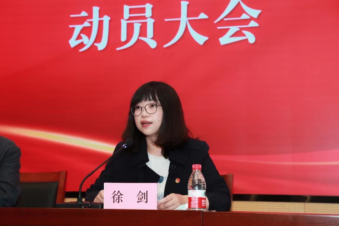 动员会现场,李英姿老师为大家主讲《百年党史中的青年担当》,带领广大团员青年重温百年奋斗的壮丽史诗,读懂中国共产党百年党史的“青春担当”,呼吁同学们将个人梦与“中国梦”紧紧地结合在一起,以更加坚定的信心、更加饱满的热情、更加努力的姿态,为实现中华民族伟大复兴的中国梦不竭奋斗、砥砺前行。