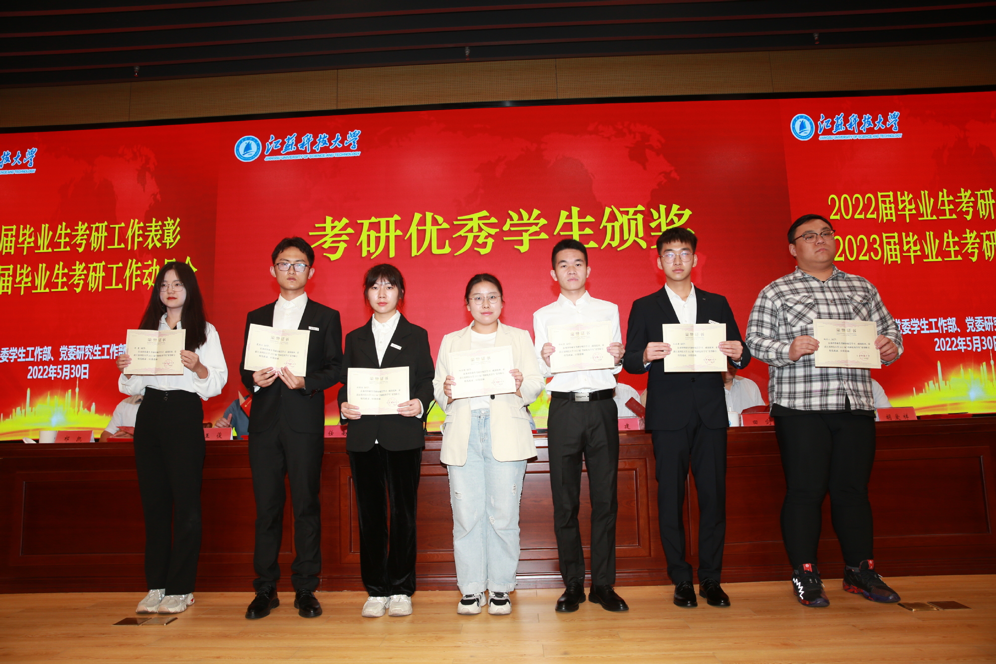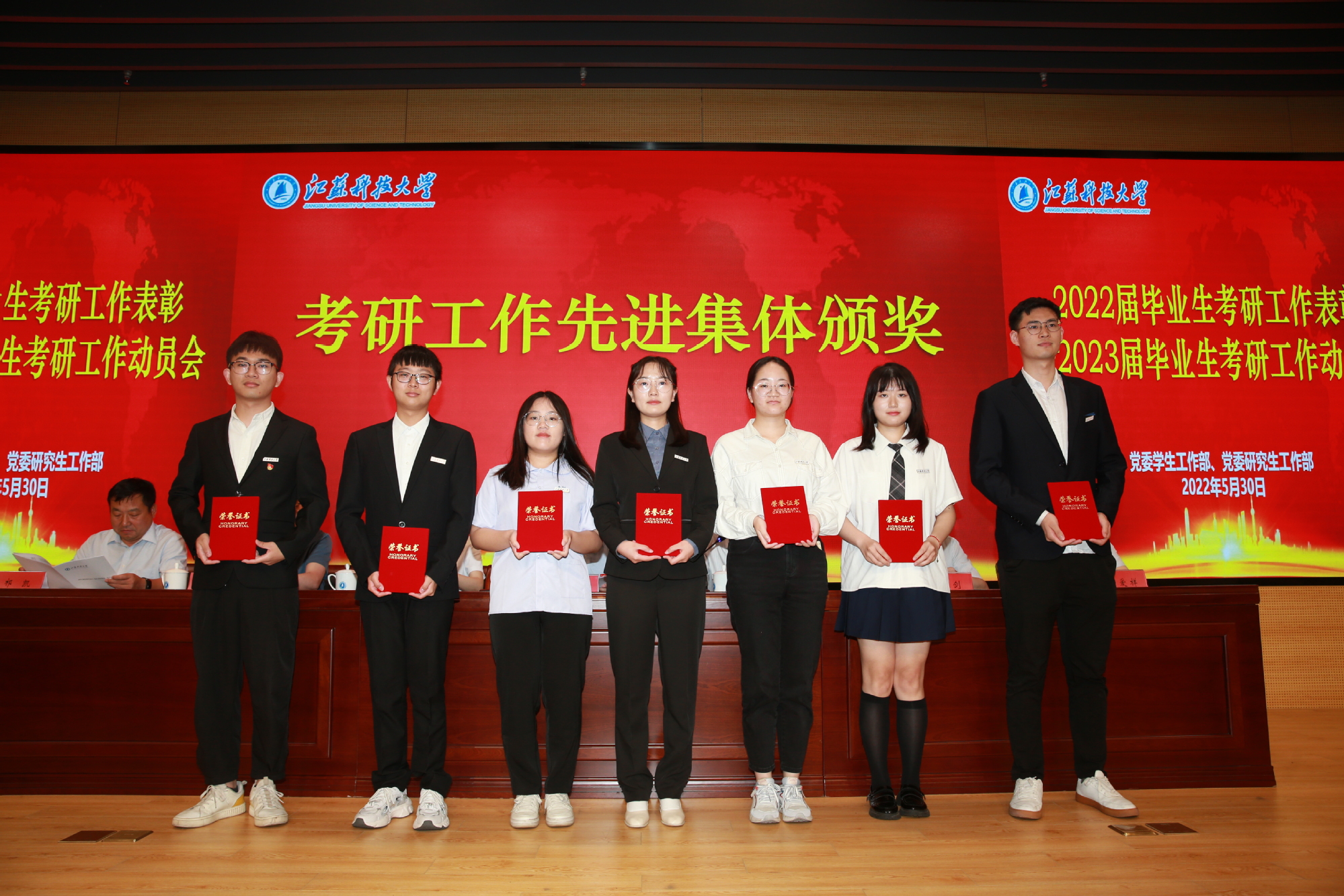 任南宣读了《关于表彰雷竞技RAYBET最新版2022届硕士研究生“考博优秀学生”的决定》《关于表彰雷竞技RAYBET最新版2022届本科毕业生考研优秀学生、优秀指导教师、先进集体的决定》,共有24名硕士研究生、1179名本科生、36名教师及37个先进集体(7个学院、10个班级、20个宿舍)受到表彰。