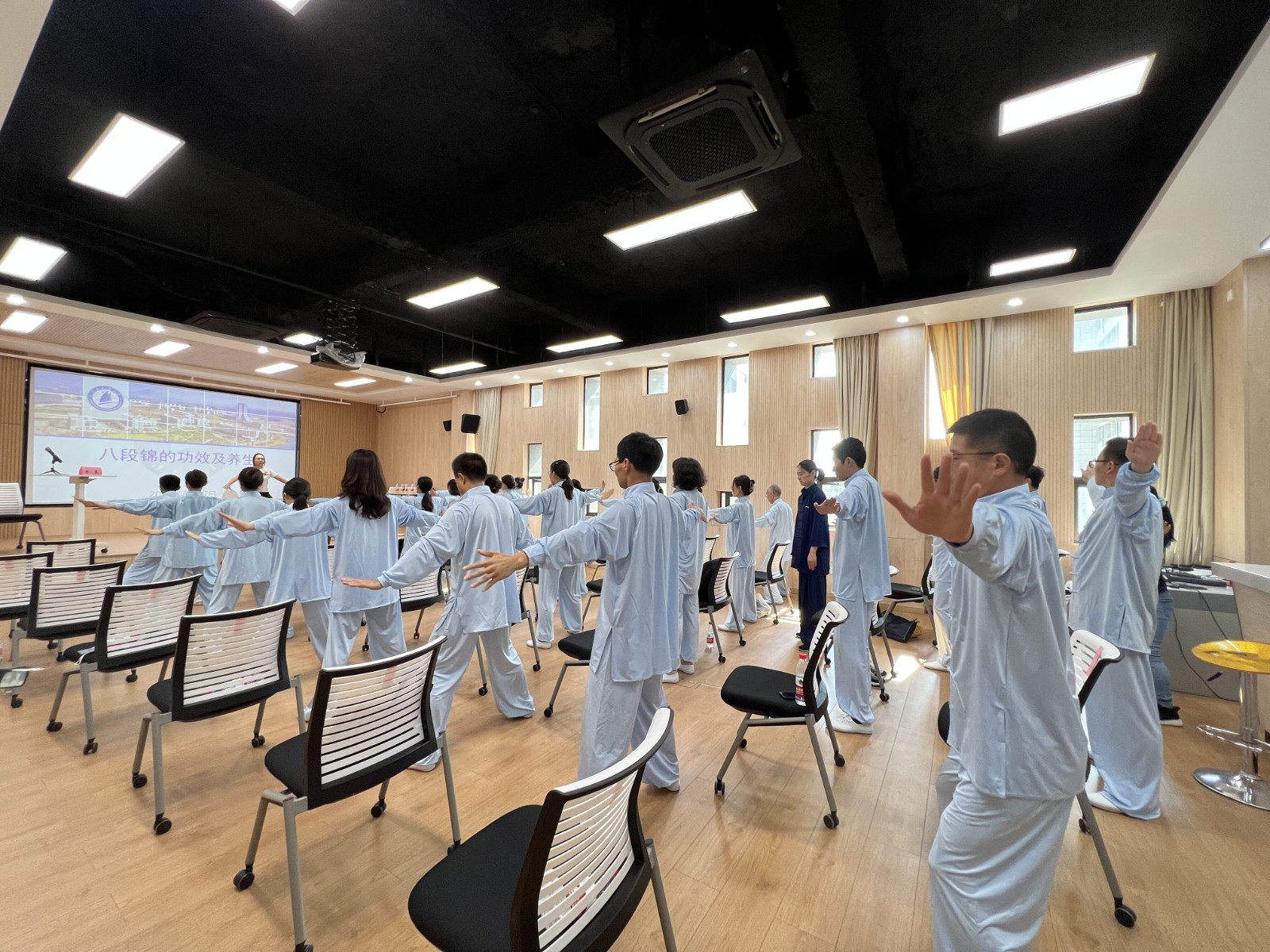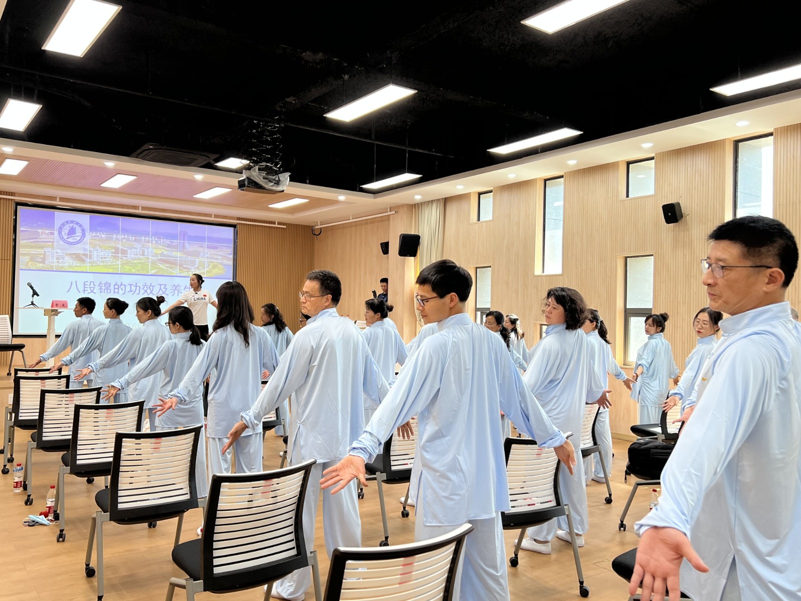按照计划,学校将以部门工会为单位,借力领训员资源,努力探索适合本单位的八段锦推广普及的有效方法。有条件的单位,利用每周四的全民健身日进行面对面的集中学习交流,人员分散的单位,也可以通过逐级培训、资料分享、线上联动等方法,因地制宜,利用每天工作间歇以“工间操”模式加强练习、全面普及,从而达到共同强化体质、愉快身心、增强集体凝聚力的效果。
