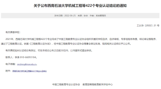 近日,中国工程教育专业认证协会发布《关于公布西南石油大学机械工程等422个专业认证结论的通知》(工认协〔2022〕21 号),RAYBET官网海洋学院电子信息工程专业完成了中国工程教育专业认证协会组织开展的学校自评、自评审核、专家组现场考查、结论审议等程序,通过工程教育认证,有效期为6年(2022年1月至2027年12月)。这标志着电子信息工程专业的质量实现了国际实质等效,进入全球工程教育的“第一方阵”。