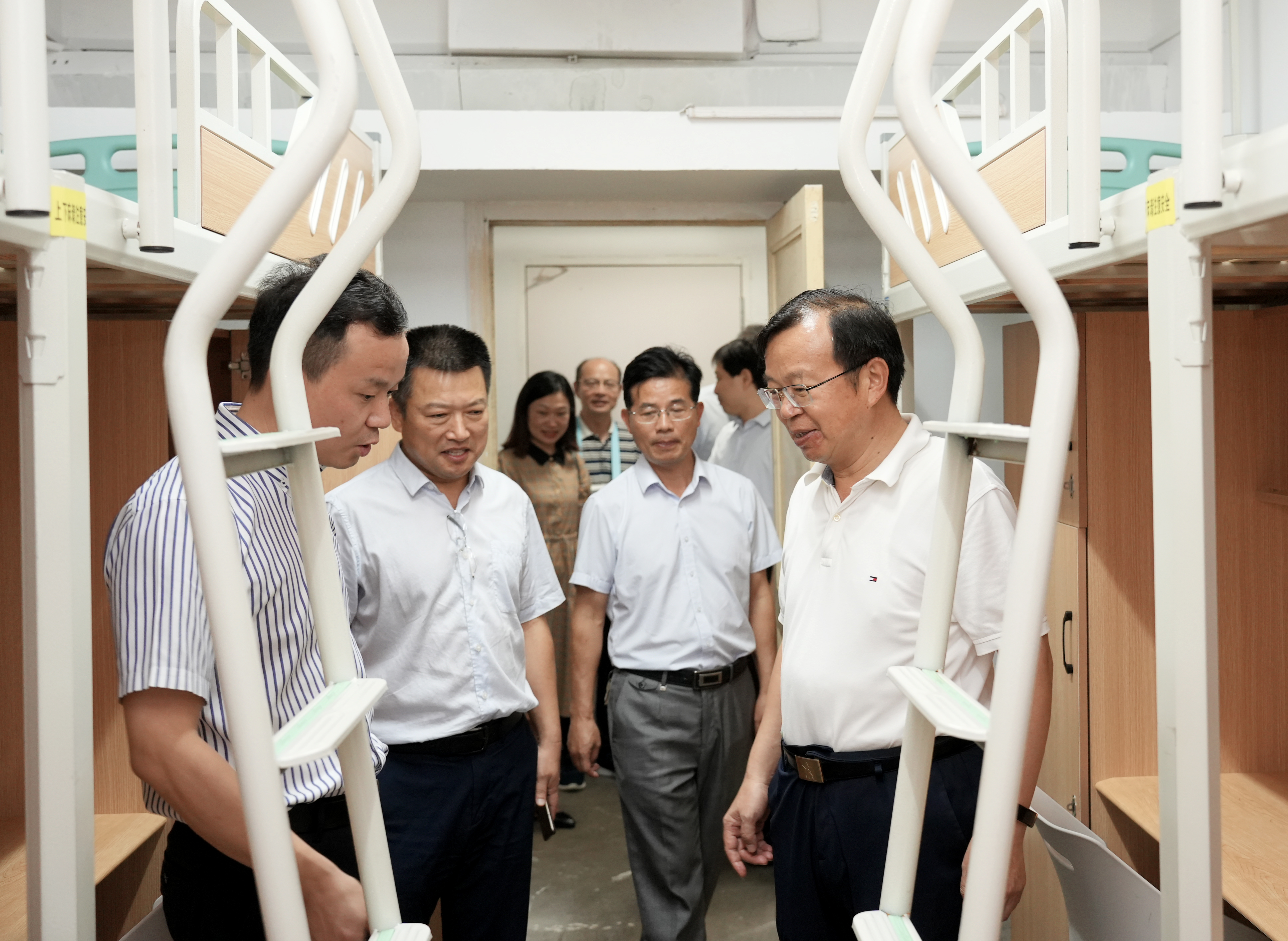 随后,周南平一行实地检查了改造后的学生宿舍、公共浴室和校园道路,对宿舍硬件设施、室外绿化环境等方面存在的问题提出了指导意见,督促各部门通力合作,加快建设进度,优化工作流程,真正做到以学生为中心,为学生提供更具人性化的服务和更好的学习、成长环境。