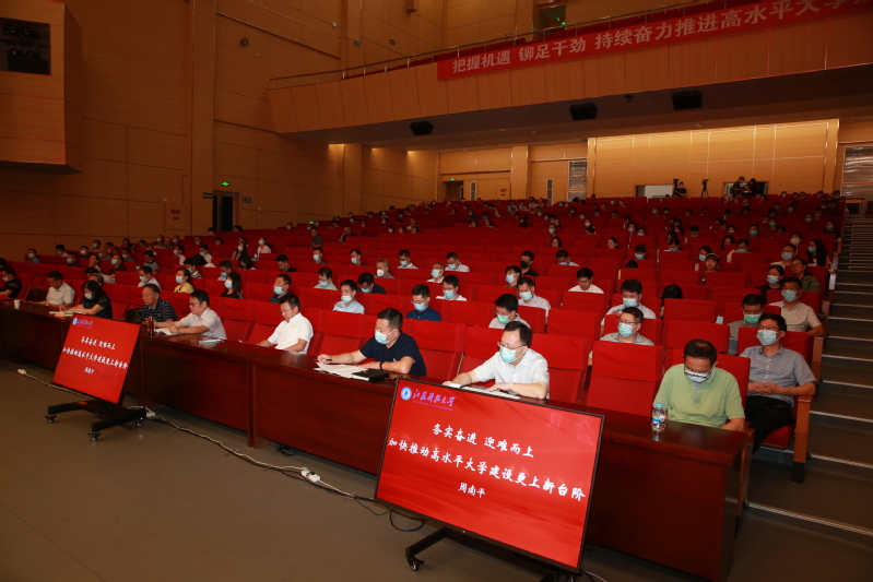 校长周南平作《务实奋进 迎难而上 加快推动高水平大学建设更上新台阶》的工作报告,总结学校上半年各项工作开展情况,对学校年度目标任务的考核方式进行说明,并结合学校实际部署下半年工作。