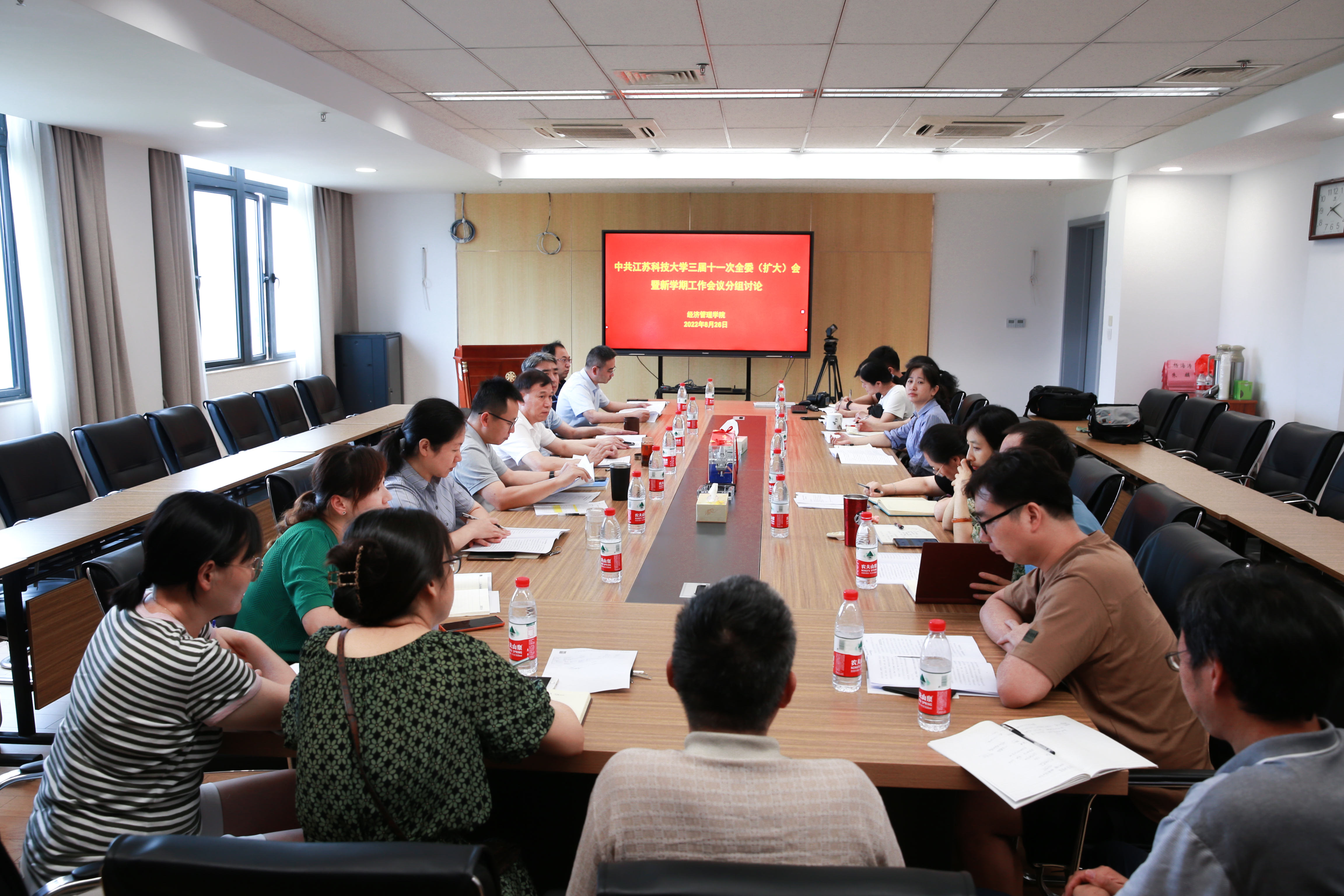 讨论中,党办统战部校办档案馆全体成员共同研讨学习书记和校长的新学期工作报告,大家表示,要继续发扬“迎难而上,担当作为”的作风,加强工作的系统思维,不断提升工作本领,为学校高水平大学建设做出应有的贡献;组织部全体成员对学校2022年上半年取得的成绩倍感振奋,表示要把对党的二十大精神学习成果贯穿到完成各项工作中去,铆足干劲、通力协作、攻坚克难,为学校高水平大学建设提供坚强组织保障;发展规划处教职工表示,近年来,学校在海外院士、双聘院士引进方面取得了显著成效,为充分发挥领军人才的作用,建议学校研究领军人才推动江苏高水平大学建设的具体举措;国有资产管理处教职工表示,要始终坚持以服务师生为中心,继续发扬务实、高效的工作作风,加快推进各项基础设施建设;信息化建设与管理办公室教职工纷纷表示,要为学校加快建设高水平大学提供强有力的信息化支撑,服务好学校教学科研管理工作,为学校改革发展提供决策咨询,拓展信息化对外合作交流,切实加强学校网络安全保障工作;后勤管理处教职工认为,本次大会是一次鼓舞士气的大会,是一次凝聚发展共识的大会,大家表示,要进一步解放思想,抢抓机遇,深化后勤内涵建设,以服务质量全面提升为主线,聚焦后勤服务品牌的凝练和提升,努力建设“三有三高”新后勤。