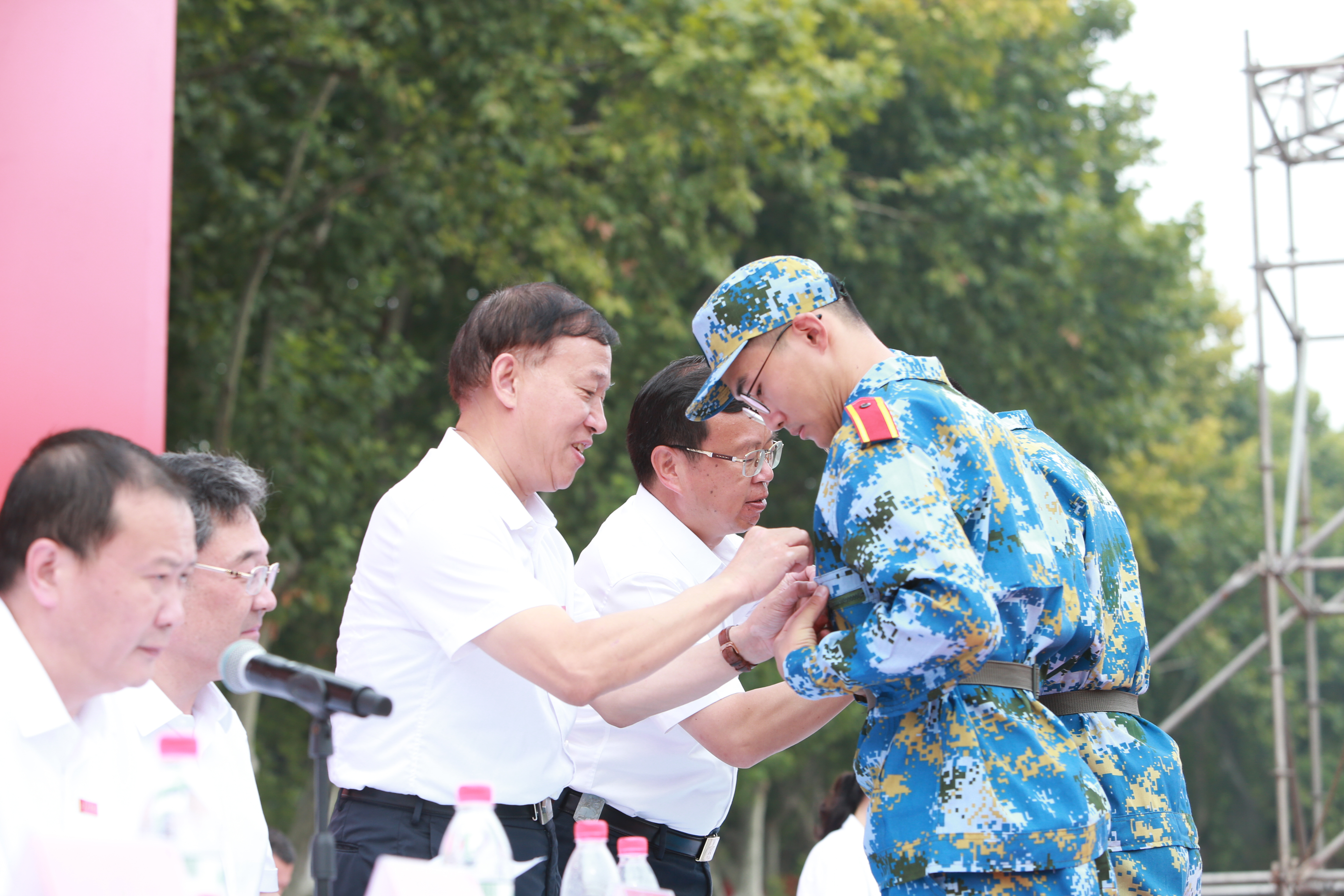 在全场热切瞩目中,葛世伦书记、周南平校长为新生代表颁授校徽,祝贺2022级新生在江科大开启知识探索之旅,与学校结成紧密相关的命运共同体。
