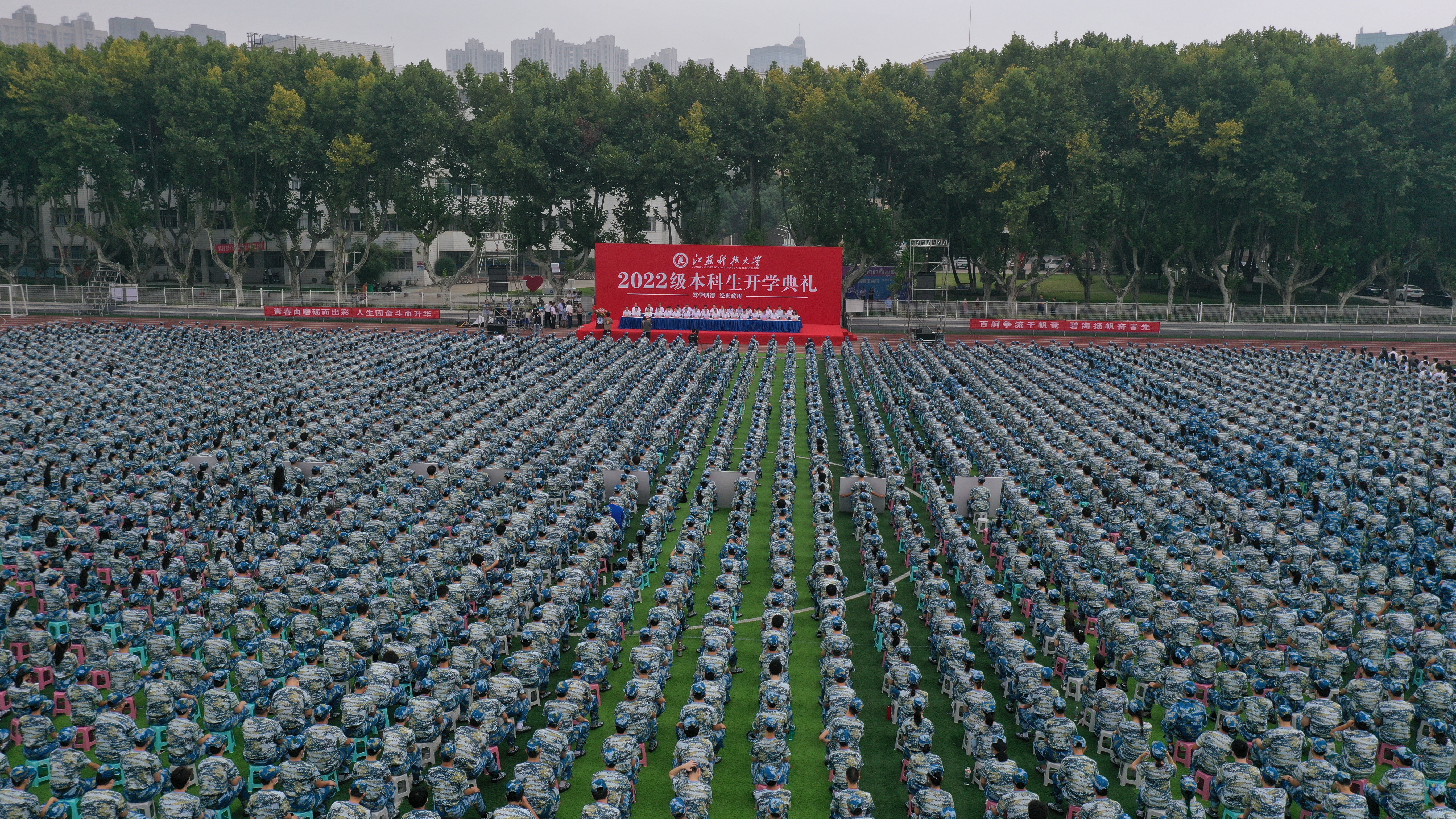9月8日上午8点,雷竞技RAYBET最新版2022级本科生开学典礼在梦溪校区体育场启幕。五星红旗缓缓升起,全体师生在嘹亮的国歌声中行注目礼。校党委副书记汤建主持典礼。