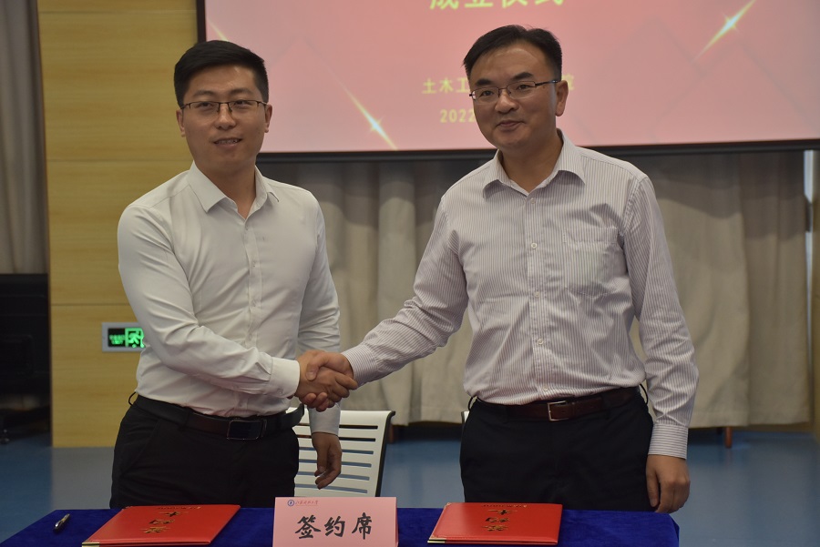 土建学院院长潘志宏向与会代表介绍了学院师资、学科、专业和实验室资源建设等情况。他表示,学院目前拥有一个江苏省“十四五”重点学科(土木工程),两个国家一流本科专业建设点(土木工程、工程管理)。希望能够与联盟单位合力打造工作站、产业班,让学生真正做到学以致用,共同培养具有较强学习能力、专业功底扎实的高质量应用型人才,实现校企联盟协调育人。潘志宏举例介绍,土建学院青年教师团队以参与世界第一跨张靖皋长江大桥建设为契机,与企业深度合作,通过在合作企业设立研究生工作站、实习基地,做实“产学研用一体化”的合作模式,实现科技服务与人才培养的同步发展。潘志宏表示,校企双方通过优势互补、取长补短,同向同行,一定能实现高效、双赢的目标。