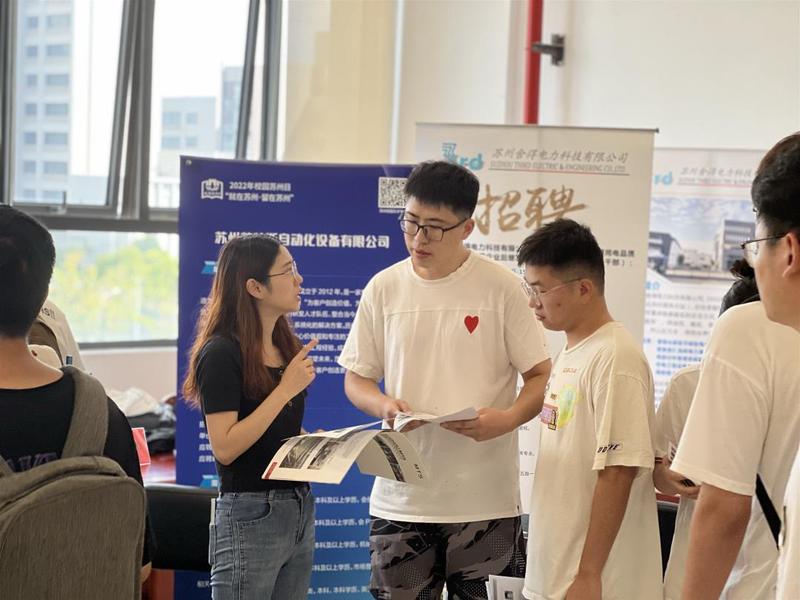 9月17日,苏州市人才服务中心联动全市,组织59家用人单位,提供1978个就业岗位,走进雷竞技RAYBET最新版。招聘会现场,同学们带着精心制作的简历,与企业HR面对面沟通交流。此次招聘苏州企事业单位共计收到简历1028份,初步达成就业意向465位。