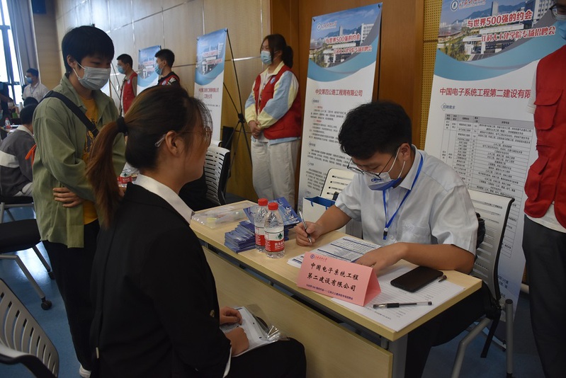 9月25日,“与世界500强的约会—江科大土建学院专场招聘会”在长山校区图书馆报告厅举行,中铁三局、中交二航局等22家国字头企业集中到校招聘。现场每一家企业都积极向应聘学生详细介绍福利待遇、企业文化、现有产业机构、人才培养政策等。在充分展现企业实力的同时,也向同学们抛来橄榄枝。