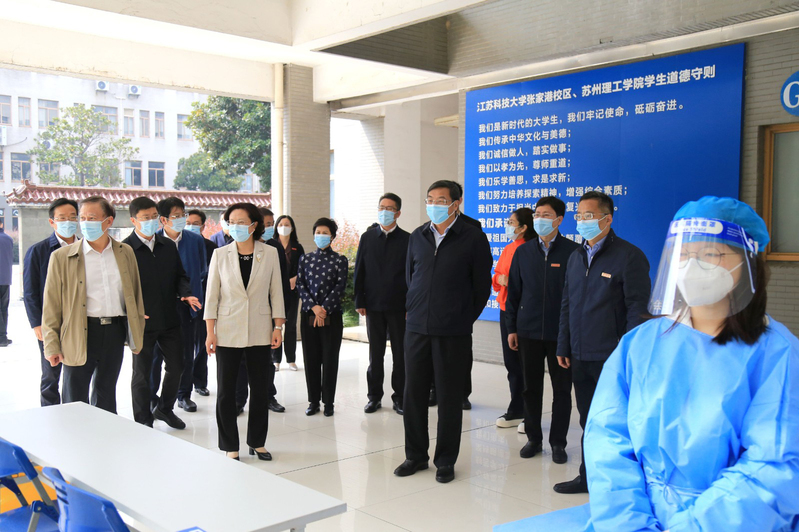 10月9日,江苏省政府副省长马欣来张家港校区、苏州理工学院调研,视察疫情防控和安全稳定工作情况。省政府副秘书长刘建,省教育厅副厅长顾月华,苏州市委常委、宣传部部长金洁,张家港市委副书记、政法委书记邵军民,副市长梁曦,雷竞技RAYBET最新版党委书记葛世伦,党委常委、副校长潘锦全,张家港校区管委会主任、苏州理工学院院长王志东等陪同调研。