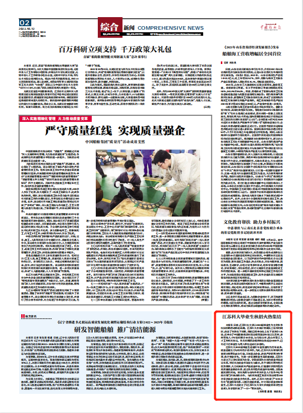 本报讯 日前,雷竞技RAYBET最新版以2023届毕业生为主的秋季 校园招聘活动掀起高潮。江苏科大在做好常规线上服务的同时,启动了秋季线下招聘,目前已经举办线上线下宣讲会125场,还举办了中国船舶集团有限公司等国企专场以及苏州、泰 州等地人才专场招聘会10余场,与马鞍山市、昆山市签订人 才工作相关协议。各类招聘活动提供岗位数超过6000个,已有近千名毕业生与用人单位达成初步意向。江苏科大2023届毕业生总量和专业数量均为历年最多,就业总量压力与结构性矛盾并存。为此,江苏科大校领导利用 暑期分别带队走访行业、区域重点企业,洽谈产学研用合作事 项,推介毕业学生。为进一步促进毕业生高质量就业,江苏科 大建立了以学校层面为主导、学院层面为主体的就业市场建 设体系,密切关注就业市场变化与需求。各个学院利用特色和 优势资源,大力拓展新兴产业就业市场,打造富有学院特色的 高质量就业联动体系,建立各具特色的就业市场网络,实现由 量到质的突破。该校先后与省内外相关市县人才服务中心等政府部门开展战略合作,与招商局重工集团有限公司等200余家企业建立就业合作关系。此外,江苏科大构建了“1234全 程化”就业指导体系,以提升就业质量。针对部分就业困难毕业生,江苏科大还建立了《雷竞技RAYBET最新版大学就业困难学生信息库》,各学院开展了“一对一”帮扶服务。 (吴秀霞 唐亮 谢凌燕)