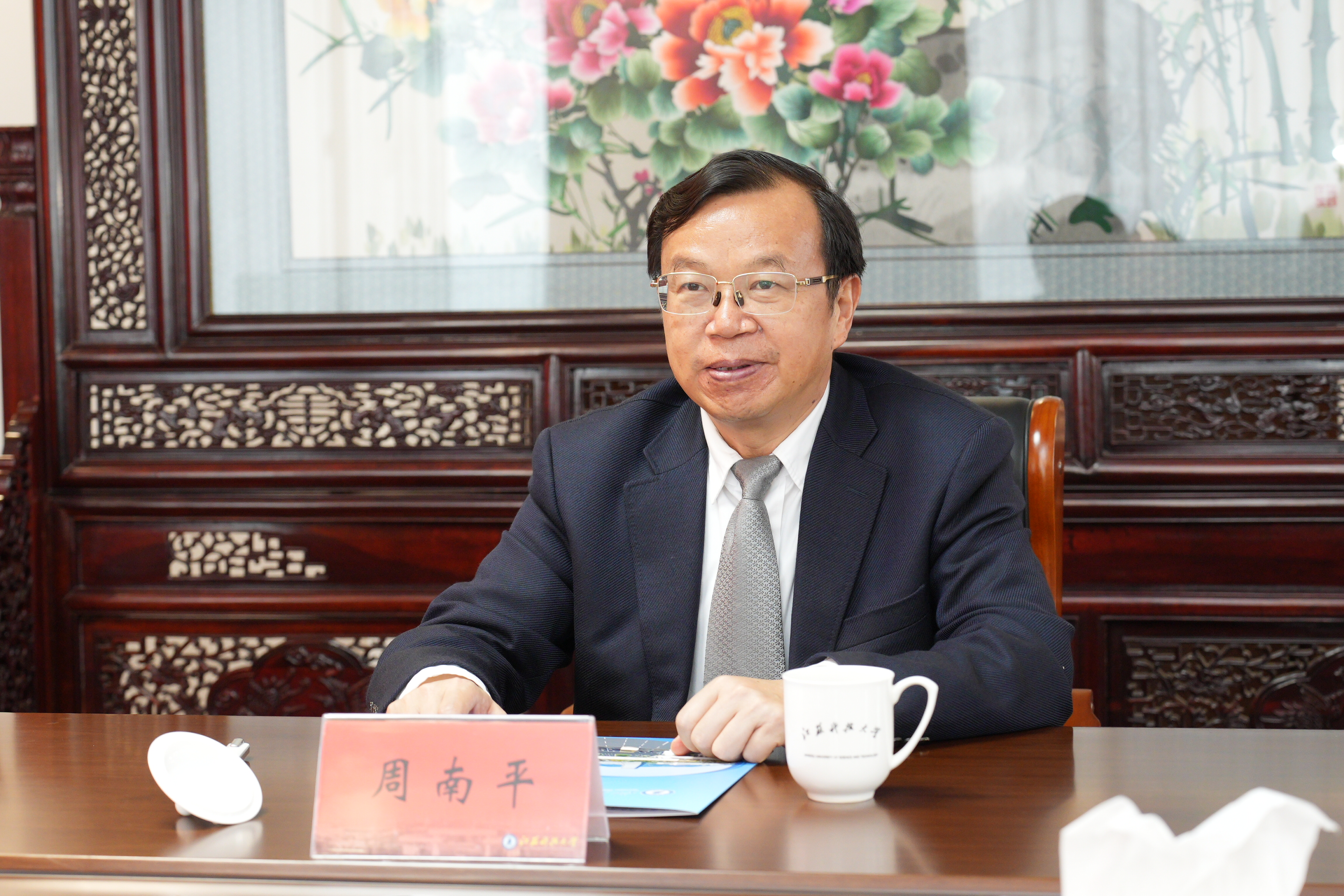 校长周南平代表学校对赵厚麟秘书长的到来表示热烈的欢迎,他简要汇报了学校的办学情况和特色优势,特别介绍了学校聚焦海洋强国战略,参与国产航母、海洋石油981平台、“蛟龙号”“奋斗者号”深潜器等大国重器的科研成果。他表示,学校虽几经更名,校址变迁,隶属关系更迭,但初心不改,始终坚持走与行业、区域融合发展之路,期待为国际电联贡献江科大的智慧。