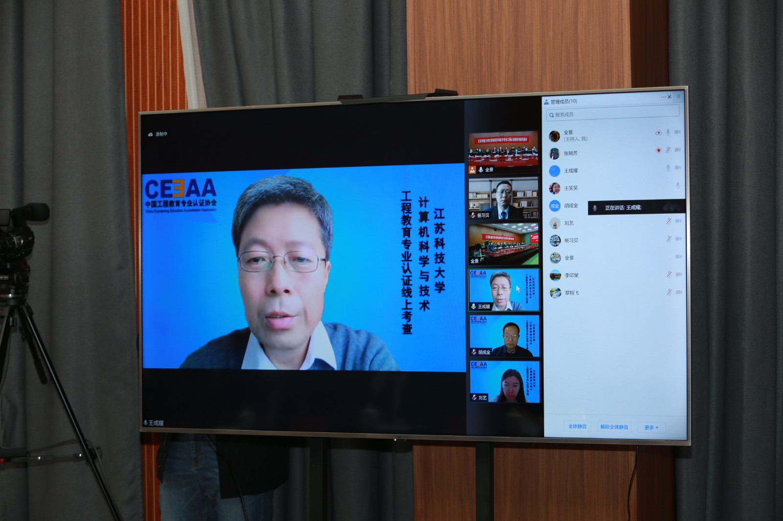 王成耀主持见面会第二阶段。他首先介绍了此次考查的背景、目的、整体工作安排及流程,并着重强调现场考查是为了了解学校专业建设与人才培养的真实情况,帮助被考查专业明晰问题所在,对潜在的重点问题进行剖析与探究,并为持续改进奠定基础。