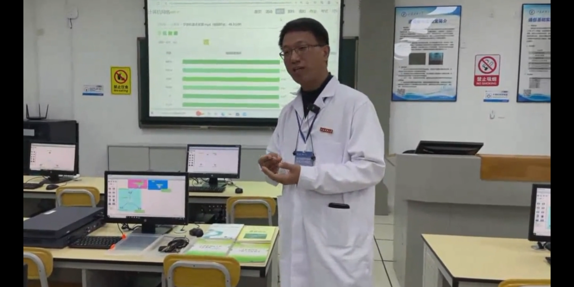 见面会结束后,通过多机位线上直播的方式,专家组对计算机科学与技术专业的办学条件进行了考查。副校长任南引导专家组分别考查了大学物理实验室、电工电子技术实验室、大学生活动中心、图书馆、嵌入式系统实验室、视觉与认知计算实验室、通信基础实验室、软件工程实验室、智能信息处理实验室以及人工智能综合实验室,相关讲解老师详细回答了专家的提问。