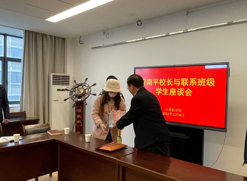 为深入学生,了解学生所思所想,12月9日上午,校长周南平走进计算机学院,走近学生,与2019级通信工程专业的学生代表展开面对面交流。计算机学院院长杨习贝、党委副书记吴健康、副院长史金龙参加交流会。交流会由学业导师徐泰华主持。