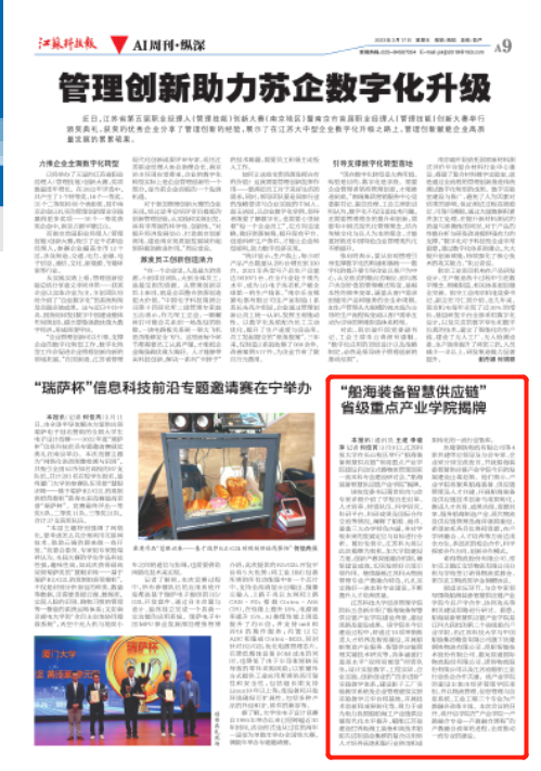 雷竞技RAYBET最新版经济管理学院院长王念新介绍了船海装备智慧供应链产业学院建设背景、建设思路及建设成果。该学院在今后建设过程中,将通过10项举措推进人才培养及智库建设,开展船舶制造产业服务、智慧供应链管理关键技术研究等,具体涵盖打造高水平“双师双能型”师资队伍,设计实验教学、工程实训、企业实践、创新创业的“四步进阶”实践教学体系,建设影子工厂实验教学系统及企业管理虚拟实景实验教学云平台和基地,开展技术创新和成果转化等,致力于成为助力我国船舶海工产业链供应链现代化水平提升、赋能江苏省建设世界级海工装备和高技术船舶先进制造业集群的复合应用型人才培养高地和集行业咨询和成果转化的一流行业智库。