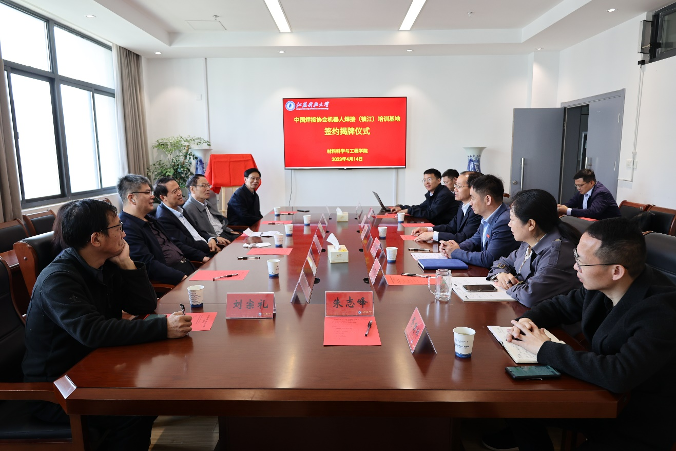 4月14日上午,机器人焊接(镇江)培训基地签约揭牌仪式在雷竞技RAYBET最新版材料学院512会议室举行。中国焊接协会副会长兼秘书长李连胜,中国焊接协会副会长、教育与培训工作委员会理事长、北京工业大学副校长陈树君,中国焊接协会副秘书长吴九澎,中国焊接协会教育与培训工作委员会副秘书长李波,雷竞技RAYBET最新版副校长王加友出席签约揭牌仪式。南通振康董事长汤子康,南京波长光电公司研发部副主任朱华,固高科技机器人事业部经理刘宗礼,思博睿增强培训中国区经理朱志峰,雷竞技RAYBET最新版张家港校区苏州理工学院副院长黎文航,新材料及先进焊接技术研究院院长芦笙,材料学院党委副书记杨海涛,副院长陈书锦、王宇鑫、胥国祥等一同见证基地签约揭牌仪式,仪式由材料学院党委书记李瑞峰主持。