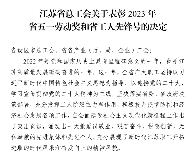 4月27日,江苏省总工会下发文件,对过去一年爱岗敬业、艰苦奋斗、锐意创新、无私奉献的先进集体和先进个人进行表彰。RAYBET官网机械工程学院被评为“江苏省工人先锋号”。