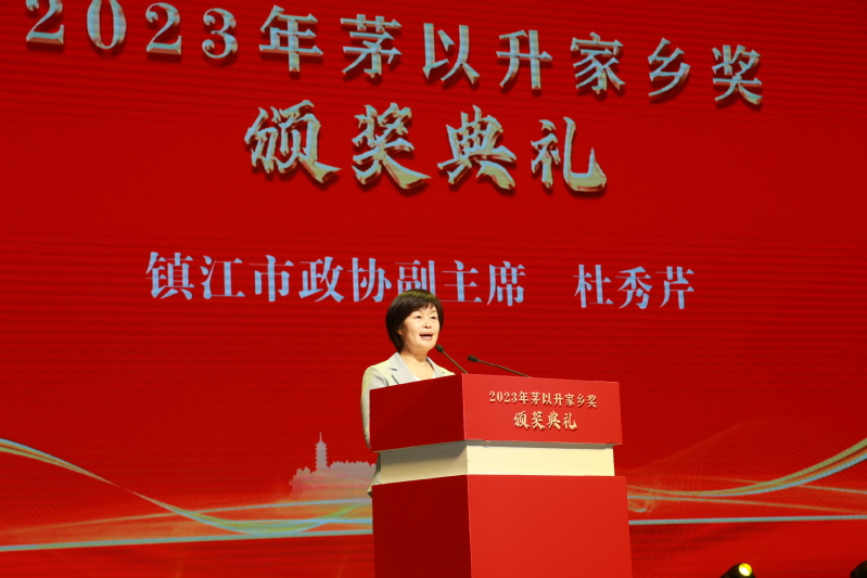 市政协副主席杜秀芹宣读《2020年度“茅以升家乡教育奖”表彰决定》和《2021年度“茅以升家乡土木工程奖”表彰决定》。北京茅以升科技教育基金会理事长茅玉麟、镇江市政府副市长黄春年、镇江市政协副主席杜秀芹、北京茅以升科技教育基金会秘书长刘晓光为获奖者颁奖。获奖教师代表严鹏、学生代表陈晨、工程人员代表杨恒网代表获奖者发表获奖感言。