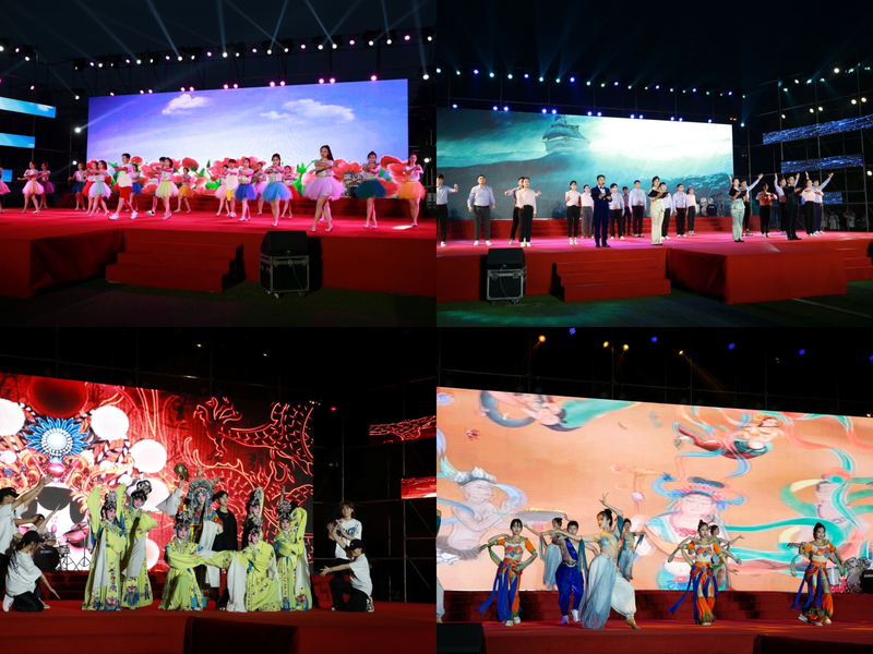 混合着时代的气息,跃动的舞姿,晚会在活力四射的开场舞《一路花开》中拉开帷幕。“回望碧蓝”“绽放蔚蓝”“走向深蓝”三个篇章构画了晚会的主线。各个篇章通过合唱、舞蹈、朗诵等形式生动展现了雷竞技RAYBET最新版九十年的发展历程和对未来的美好愿景,诠释了深蓝学院师生砥砺前行、团结奋进的精神风貌和“船魂”精神。音诗画节目《悠悠浦江》在深蓝学院第一、第二党支部教师党员的倾情演出中,展现江科大人谱写辉煌岁月历史的坚韧和勤勉。在古典与现代相碰撞的《国色天香》中,京剧和现代街舞穿越时空的壁垒,碰撞出精彩的火花,以时代精神激活中华优秀传统文化的生命力。悠悠驼铃中,敦煌《回响》充满爆发力和风韵美。