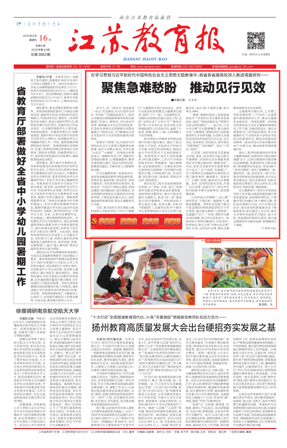 江苏教育报2023年6月16日头版头条 http://epaper.jsenews.com/Article/index/aid/7673296.html