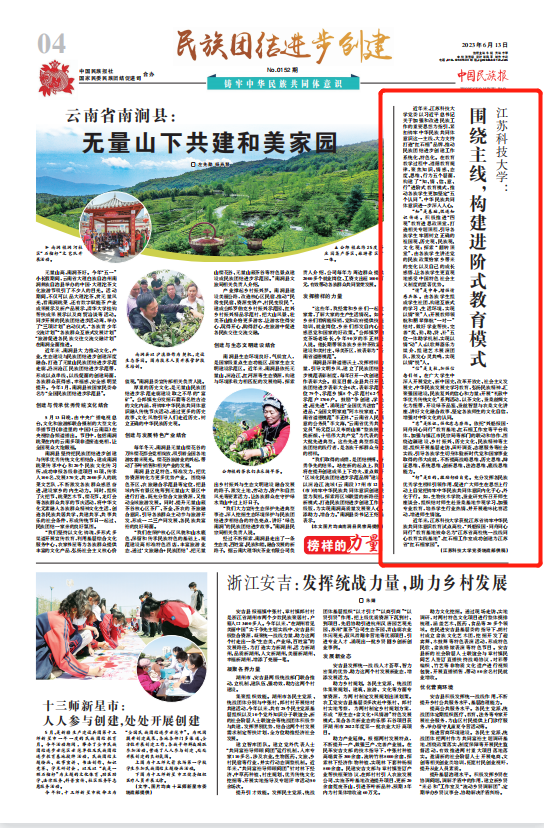 近年来,雷竞技RAYBET最新版获批江苏省铸牢中华民族共同体意识教育试点高校,“兴船报国·同舟同心同行”教育基地被命名为“江苏省高校统一战线同心教育实践基地”,红石榴工作室成功创建为江苏省“红石榴家园”。(雷竞技RAYBET最新版党委统战部供稿)