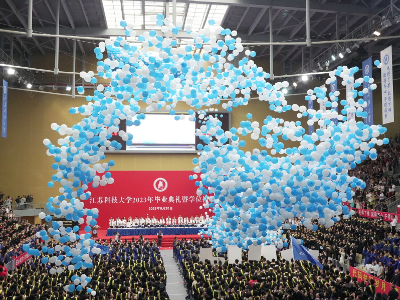 “今天以后,你们就要离开心中的‘浪浪山’,去各自的世界里做一个‘大人’了”,周南平细数诗意青春里可爱有趣的细节:“作为最后一批‘住客’,你们拥有着对悠然见南山的南校区、外号‘小牛村’的西校区的独家记忆;你们选修到了令人羡慕的潜水、浆板、皮划艇课程,划起了海韵湖第一年下水的端午节龙舟;你们吃到过江科大专属定制月饼、文创雪糕;你们用文理大楼的光学望远镜观测过中秋圆月、灿烂星河;你们看到了校园里天鹅宝宝的破壳而出;你们更见证了学校被遴选进入江苏高水平大学的行列.....”他希望这些母校留下的浪漫记忆,在毕业生们心中化为澎湃的爱意,帮助他们成长为活泼、善良、纯真的“大人”。