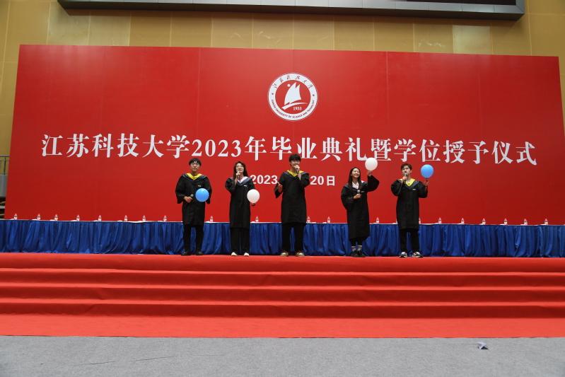 骊歌声起,少年即将踏歌远行。“乘长风,破巨浪,扬云帆,跨海洋……”毕业生们用饱含深情的歌声,再次展示出江科大人自强不息的精神底色和矢志不渝的家国情怀。伴随着悠扬奏唱的雷竞技RAYBET最新版校歌,数千只蓝白色相间的气球如海浪般纷纷扬扬地落下,毕业典礼告一段落。在中场休息时,大学生艺术团的同学们为大家演唱了动听的歌曲,悠扬歌声里,是藏不住的款款深情与依依留恋。