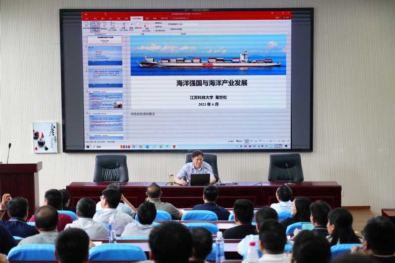 6月25日下午,校党委书记葛世伦教授为RAYBET官网举办的中国船舶集团有限公司第五期中层干部工商管理培训班作“海洋强国与海洋产业发展”专题报告。来自中国船舶集团53家成员单位的80名学员,以及学校党办、科研院、人文社科处、经济管理学院的部分中层干部和教师聆听了授课。