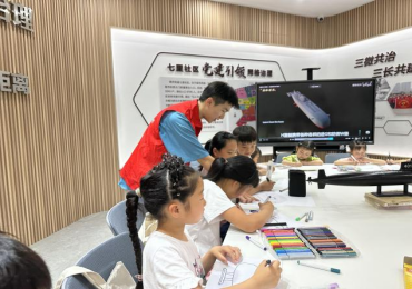 在开展舰船科普讲座之余,实践团成员在七里社区党群服务中心进行课业辅导,他们细致地解答小朋友们在暑期作业中遇到的问题,耐心地回答他们在学习生活中碰到的困惑。