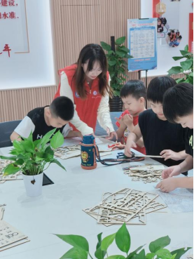 动手实践过程中,实践团成员带领小朋友们一同绘制梦想中的船舶简画,摇身变为小小造船师;一起手拼广州号驱逐舰,感受军舰的宏伟雄姿;一起制作电动小船,在水池中扬帆起航,感受逐梦海洋的壮阔。实践课程培养了孩子们的动手能力,激发了孩子们对船舶设计与建造的兴趣,增长了他们的见识。