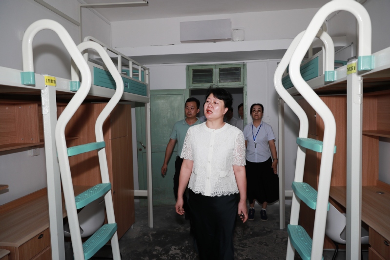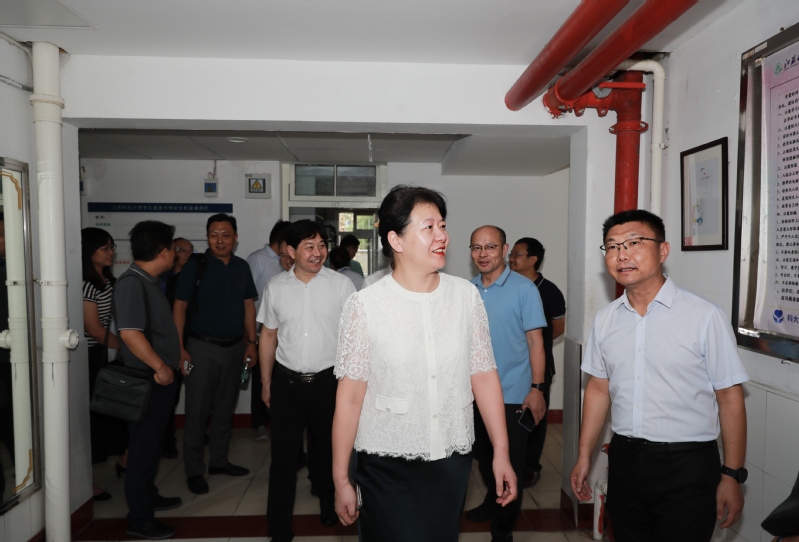 嵇春艳校长一行先后检查了校园门禁、安防系统,到操场、学生食堂、学生宿舍、东苑餐厅了解改造情况,在深蓝学院会议室听取相关职能部门汇报。相关职能部门分别就暑期学生工作和教育管理、信息化建设、深蓝学院管理工作、梦溪校区办学条件改善、后勤服务保障等工作进行汇报。