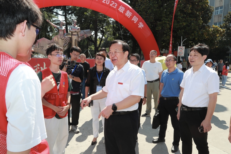 9月9日,雷竞技RAYBET最新版迎来8000余名报到入学的2023级新生,其中,本科生6588人,硕、博士研究生1989人。金秋时节,来自五湖四海的英才,满怀憧憬与梦想相聚于青春洋溢的校园,书写他们与江科大的故事。校党委书记周南平,校长嵇春艳,校党委常委、副校长胡爱祥,副校长周宏根等校领导与相关职能部门负责人前往迎新现场,看望正在报到的新生及家长并与他们亲切交流,慰问认真工作的师生员工和志愿者。